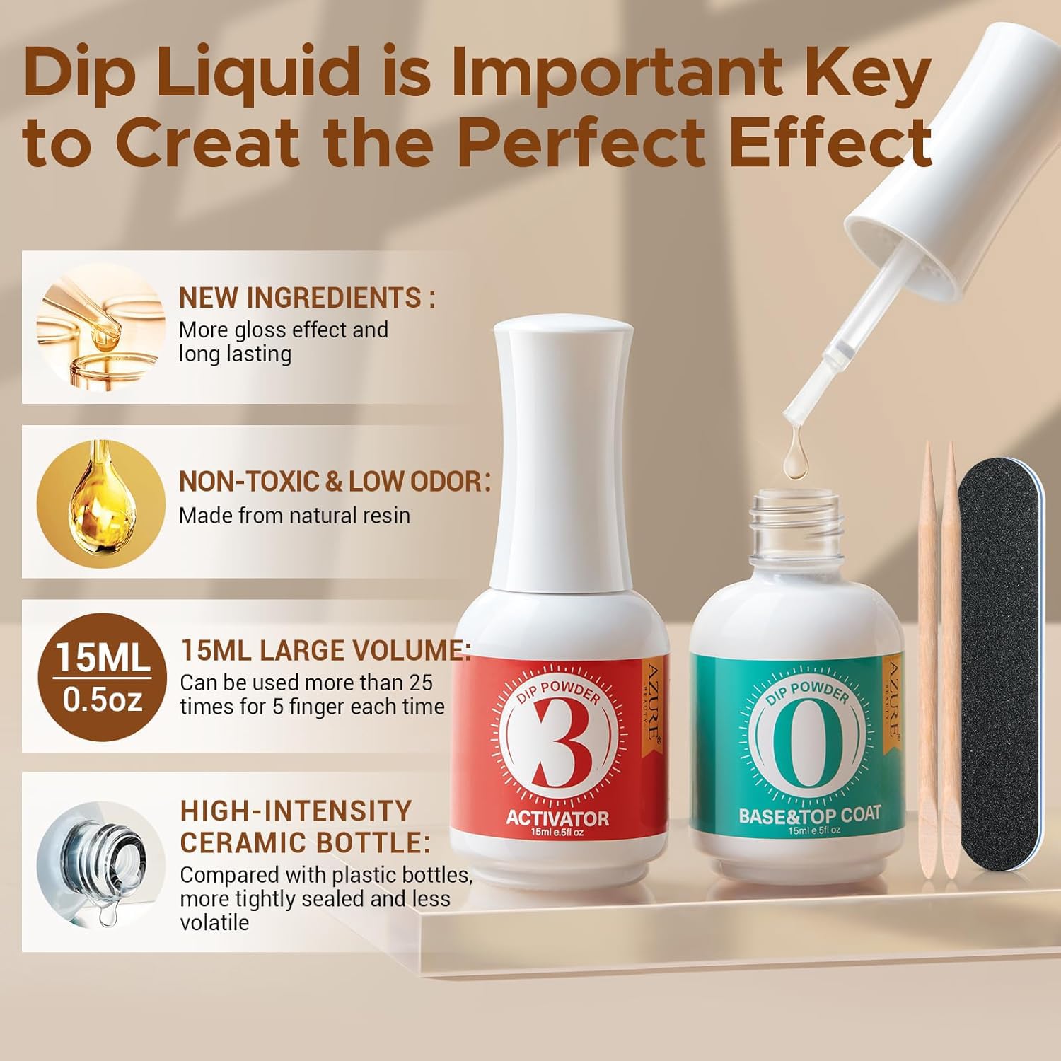 - AZUREBEAUTY 2 Combined into1 Dip Powder Base & Top Coat with Activator, 0.5oz/Bottle, Fast Drying, No Lamp Needed, for Nail Kit