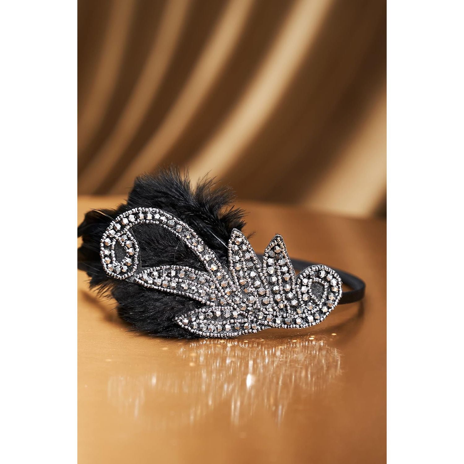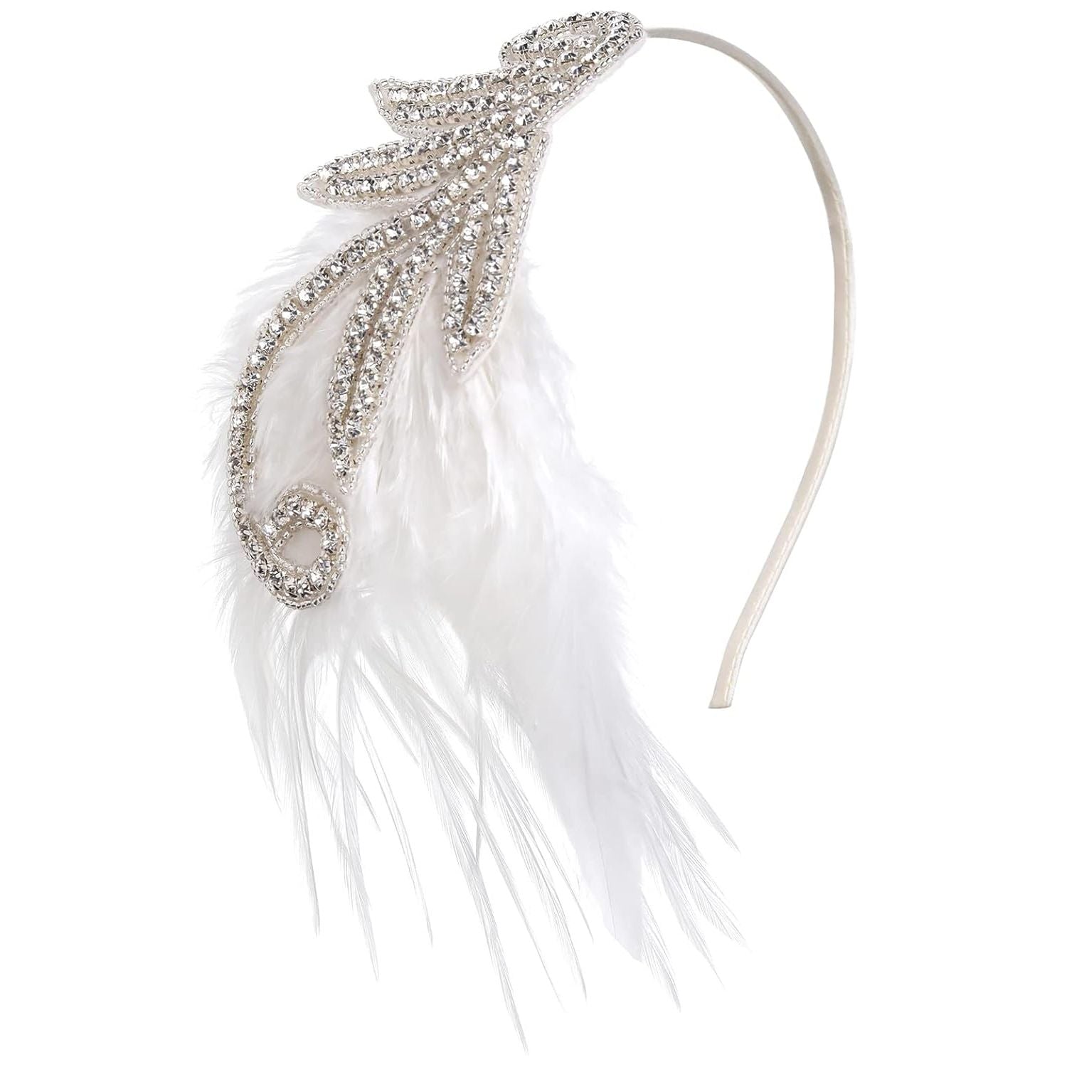 - BABEYOND 1920s Flapper Headband Accessories Roaring 20s Feather Hair Band Vintage Gatsby Party Accessories (Silver)