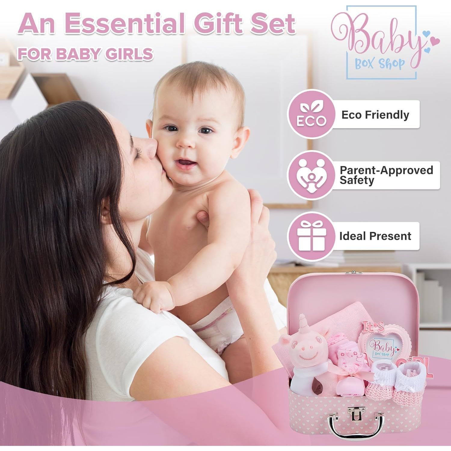 - Baby Box Shop Baby Girl Gift Set - Pink Keepsake Box with 7 Essentials for Newborn Girl