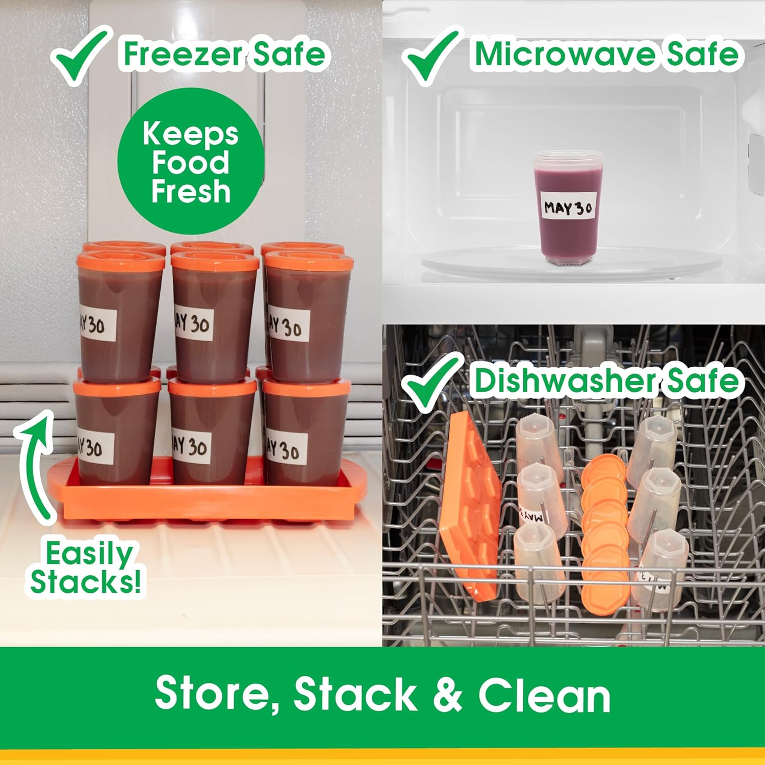 Microwave, dishwasher and freezer safe, these storage containers are the perfect storage set to keep your baby food safe and organized. Easily fillable, these storage cups are great for keeping your child's homemade favorite meal fresh! Our set also includes a new and improved dry erase function to record contents and date so you always know what your child is eating.