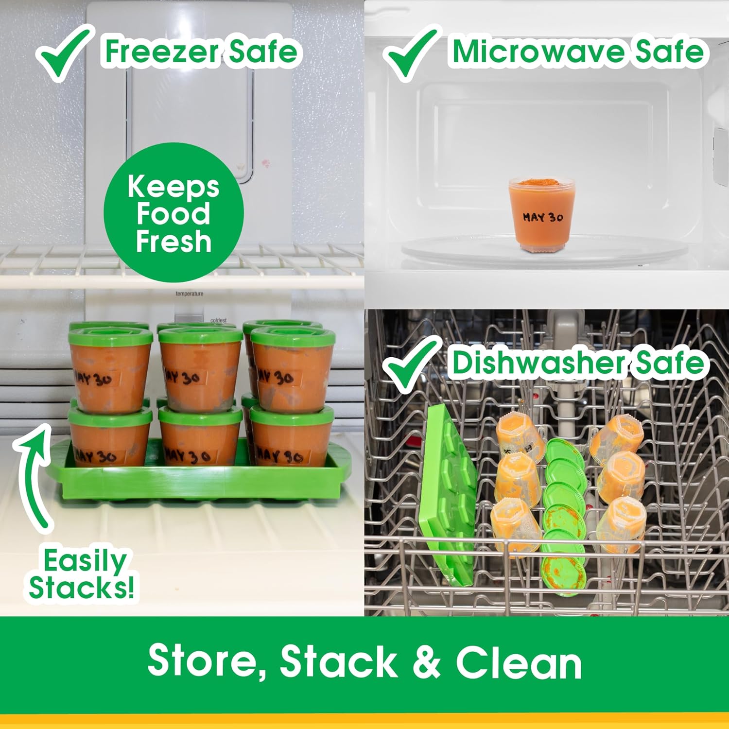 - Baby Food Storage Containers w Write What You Want Lids (12 Pk) - 2oz Reusable Leakproof Plastic Jars & Tray- Freezer, Microwave & Dishwasher Safe- BPA/PVC Free, Compatible w Bullet Blender, Gift