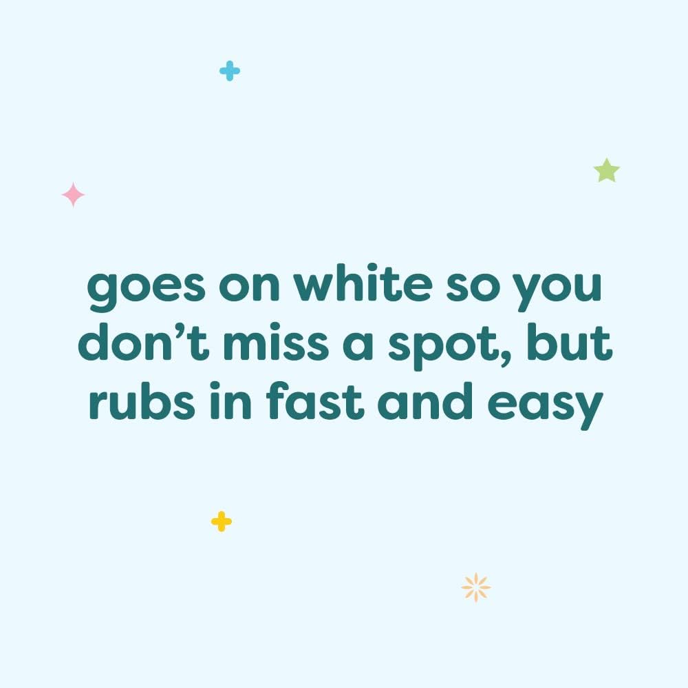 - Goes on white so you don't miss a spot, but rubs in fast and easy
