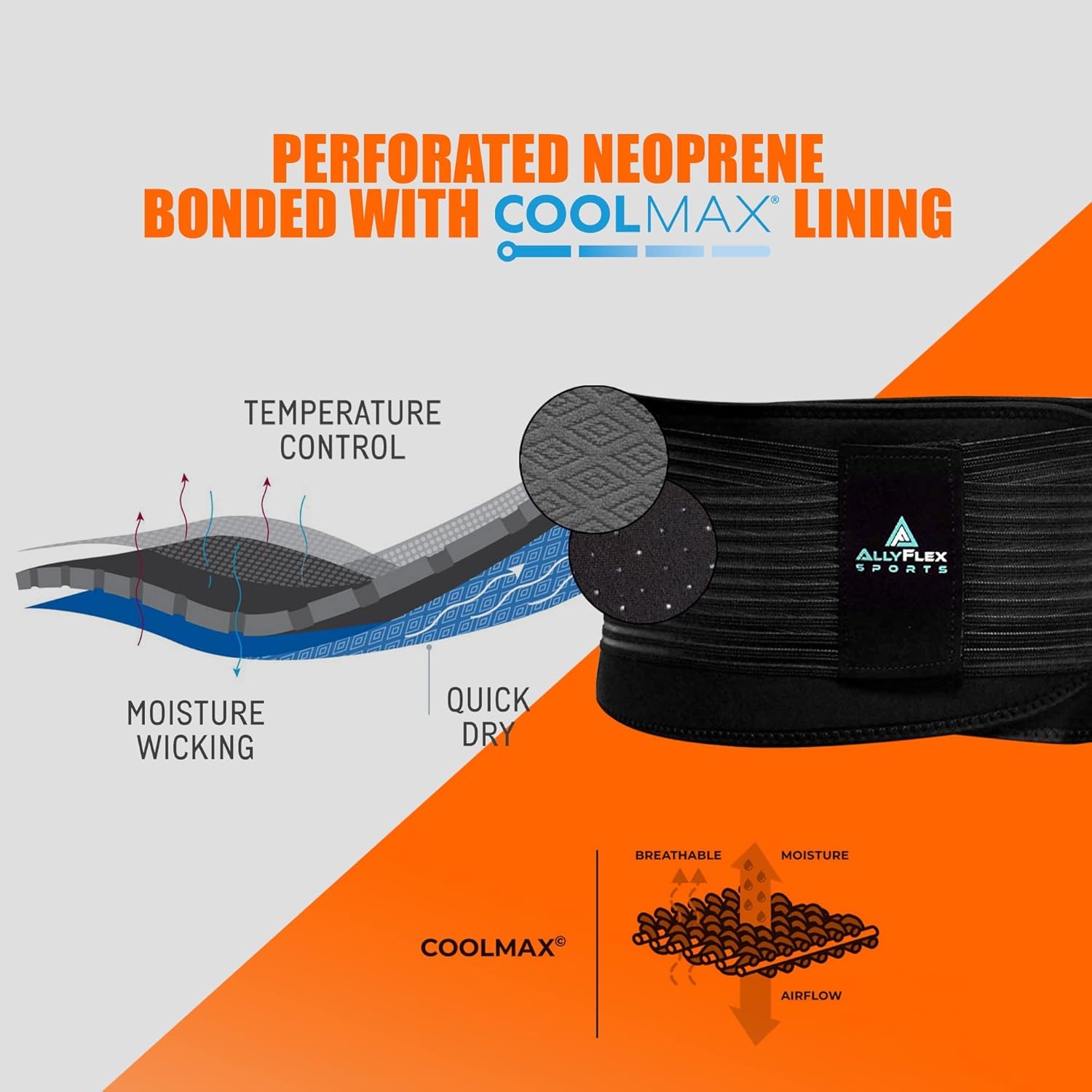 - BREATHABLE & COMFORTABLE - Tailored with Coolmax Fiber Lining and perforated neoprene, this back support belt ensures comfort when worn. It’s designed with moisture-wicking properties to keep your skin cool for convenient lower back support.