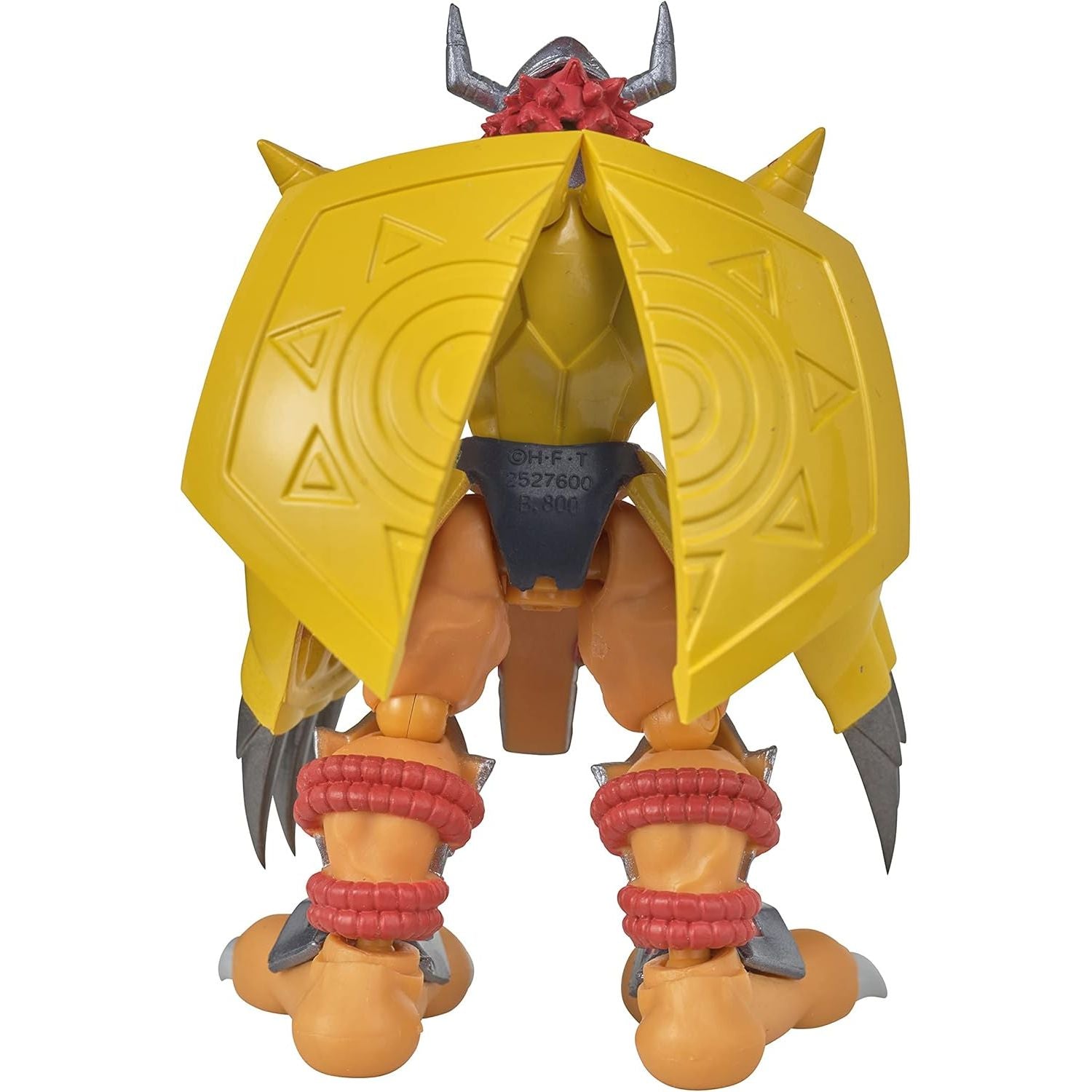 From the popular anime series Digimon Adventure, your favorite Digimon characters are now available as poseable figures in the Bandai SHODO series. WarGreymon is the ultimate evolution of the Greymon-species. This powerful Digimon is detailed just like the animation – its body is clad in yellow armor, and its arms are equipped with Dramon Killers. For the ultimate Digimon fan!