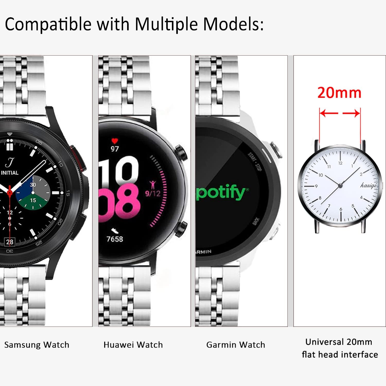 - Bands Compatible with Galaxy Watch 7 / FE / 6/6 Classic / 5/5 Pro / 4/4 Classic / 3 41mm / Huawei GT3 42mm, 20mm Solid Stainless Steel Metal Replacement Strap for Women Men