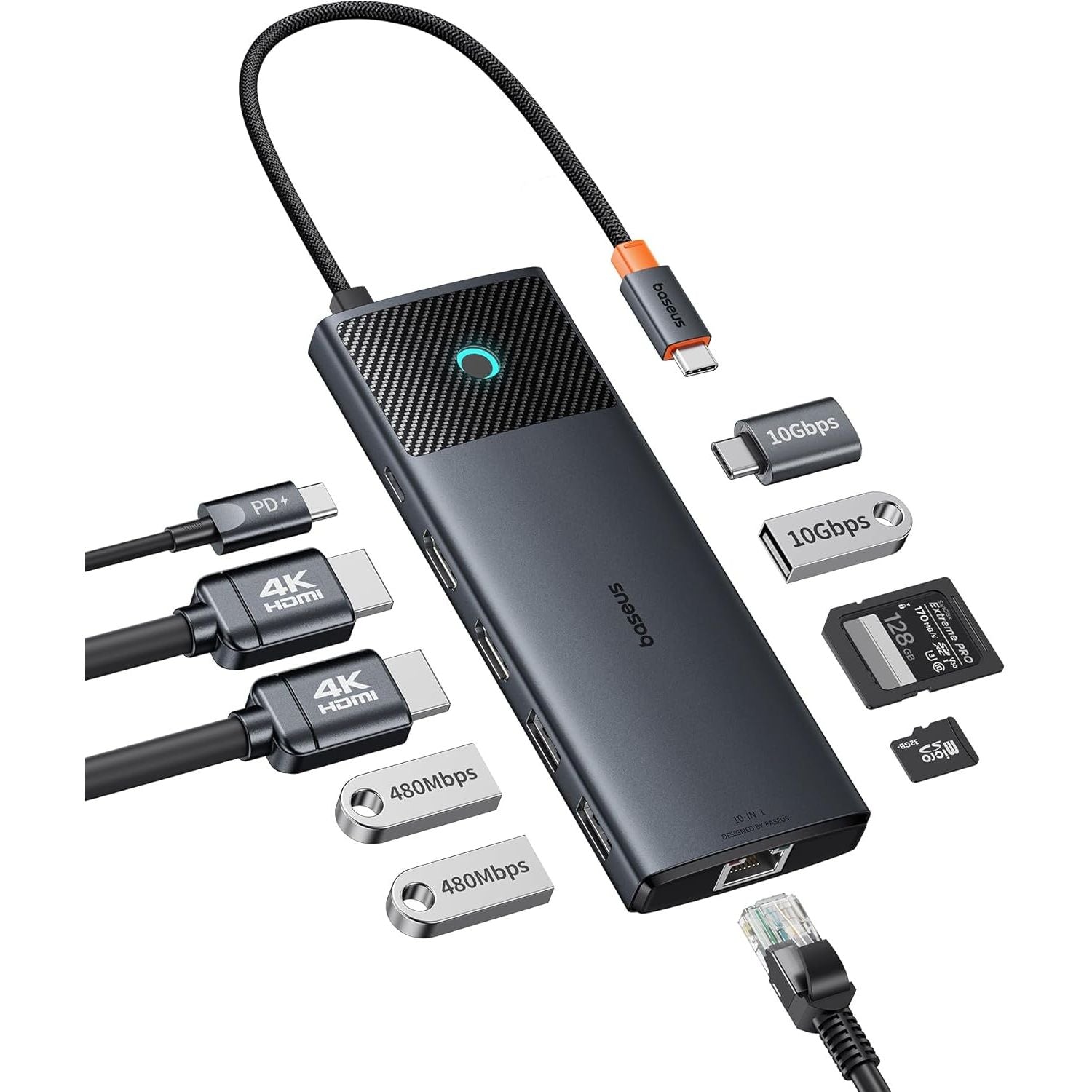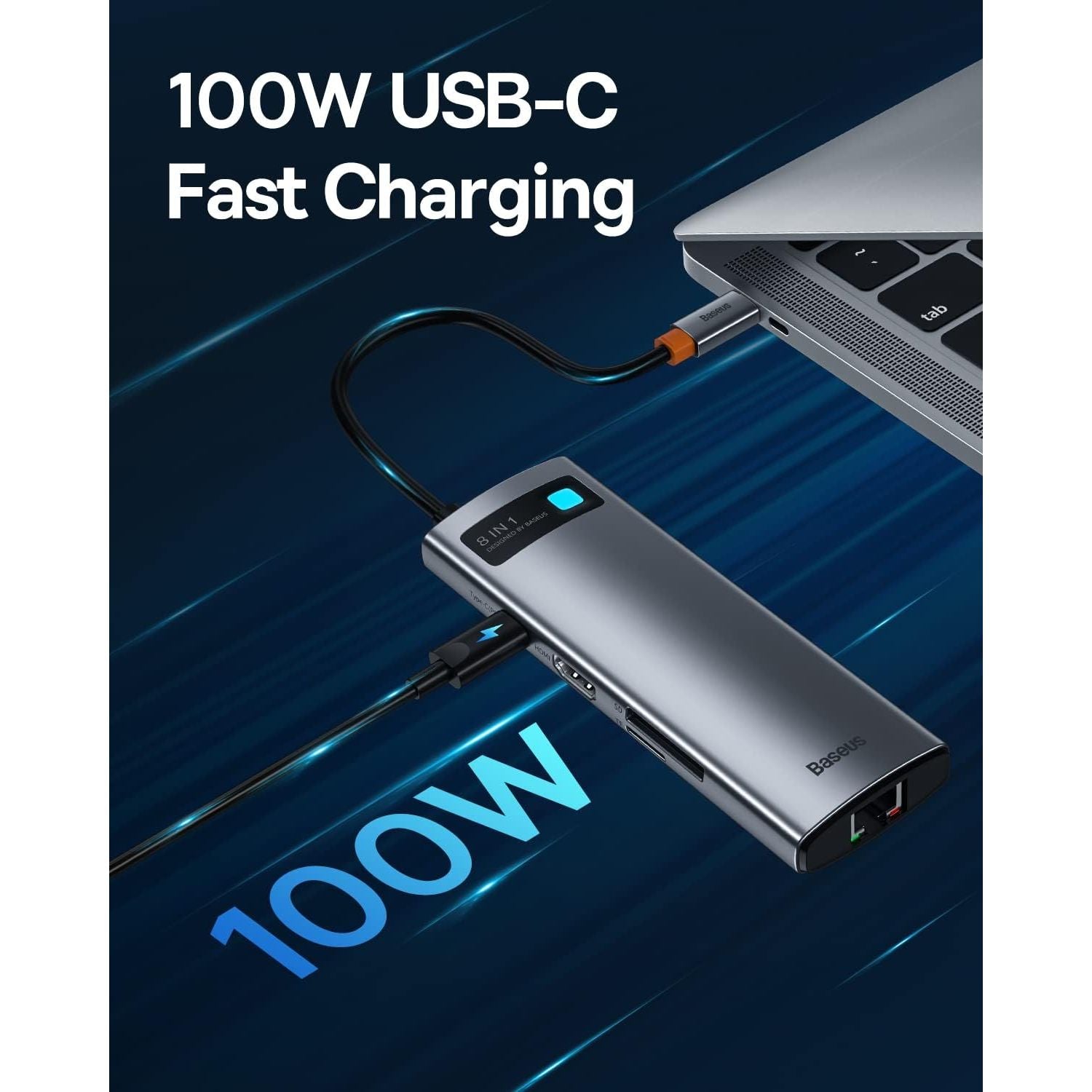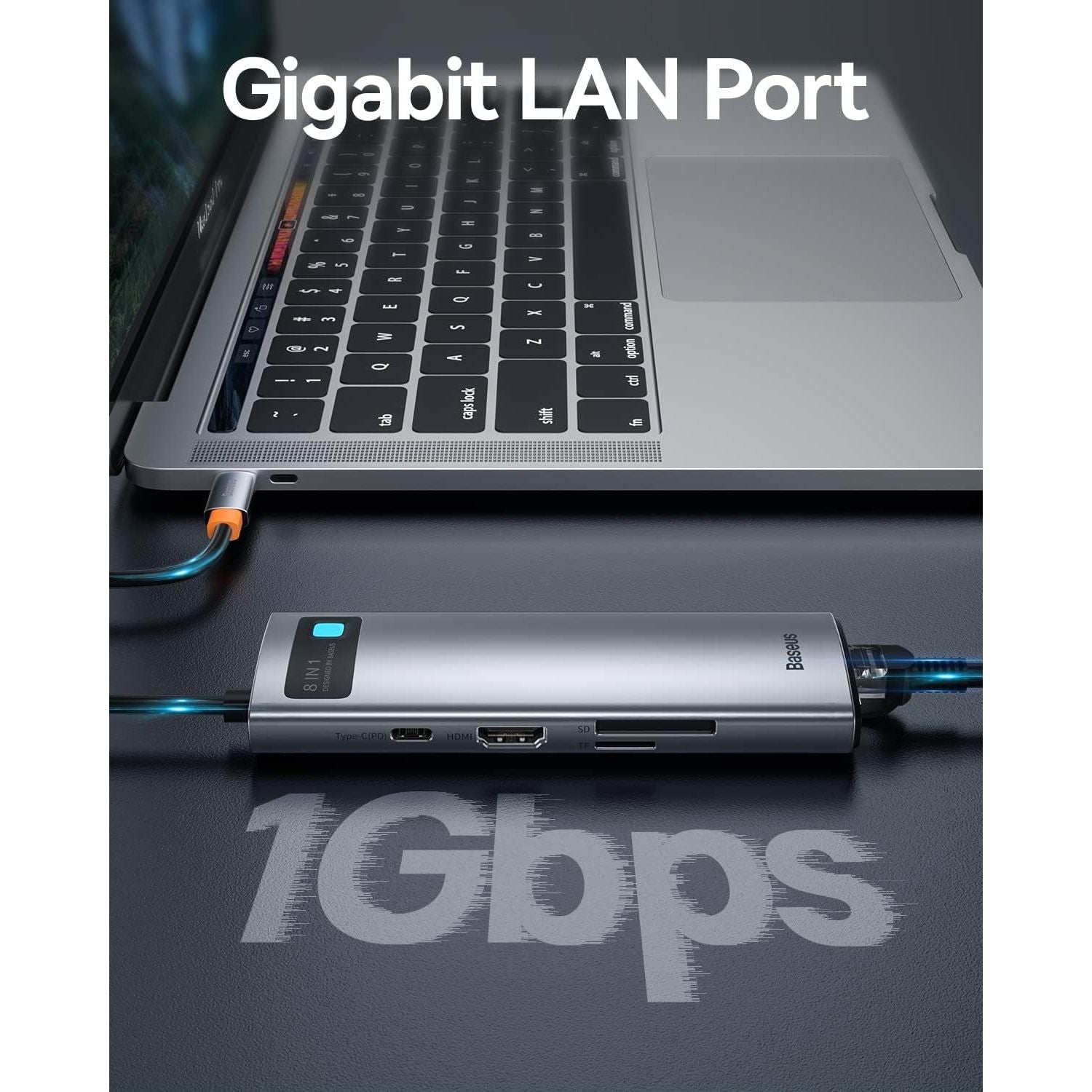 - Baseus 8-in-1 USB C Hub Docking Station, USB C Adapter with 4K HDMI, 3 USB 3.0, TF/SD Reader, Ethernet, 100W Power Delivery Compatible with MacBook, Surface, iPad, Steam Deck or Other Type C Devices