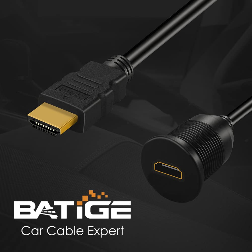 - BATIGE HDMI Male to Female Car Mount Flush Extension Cable Truck Boat Motorcycle Dashboard Flush Mount with Mounting Panel - 3ft