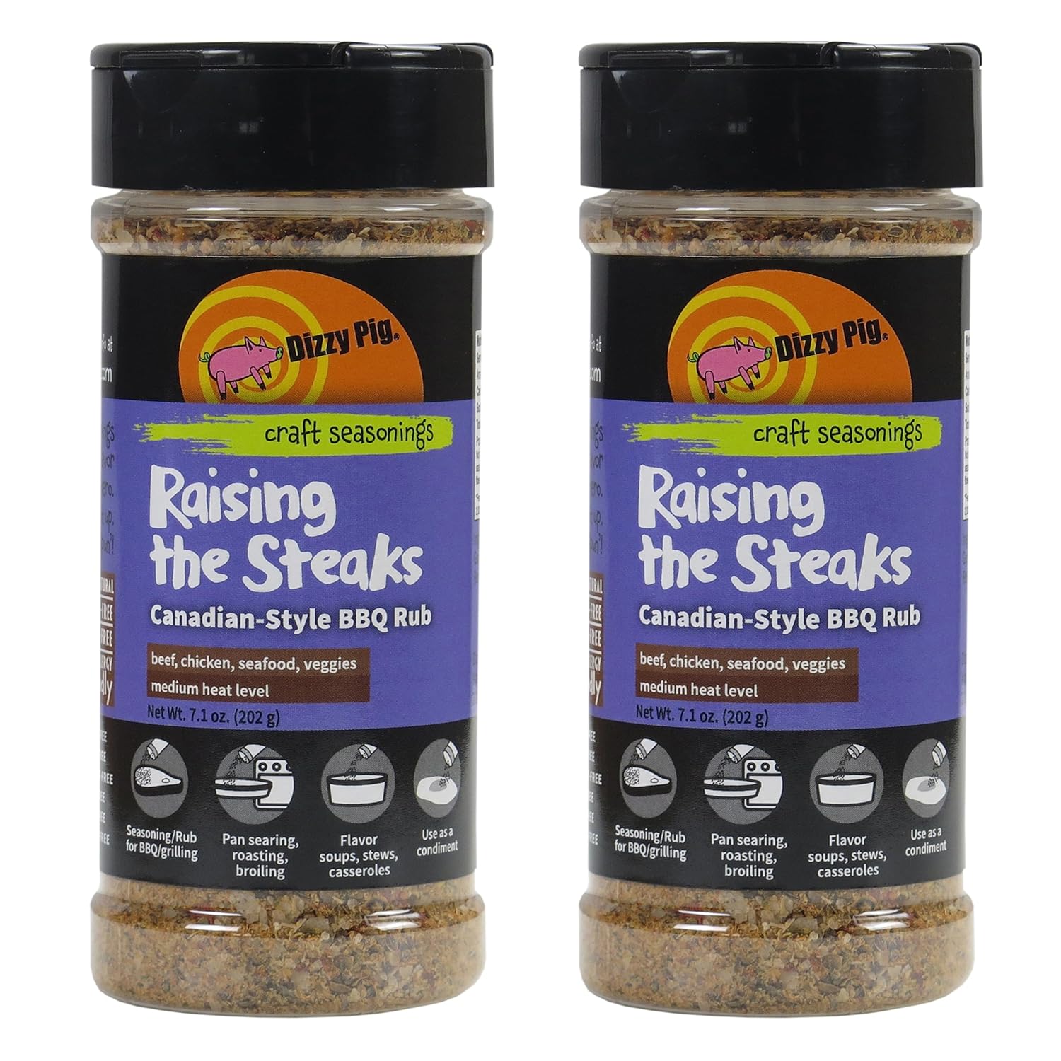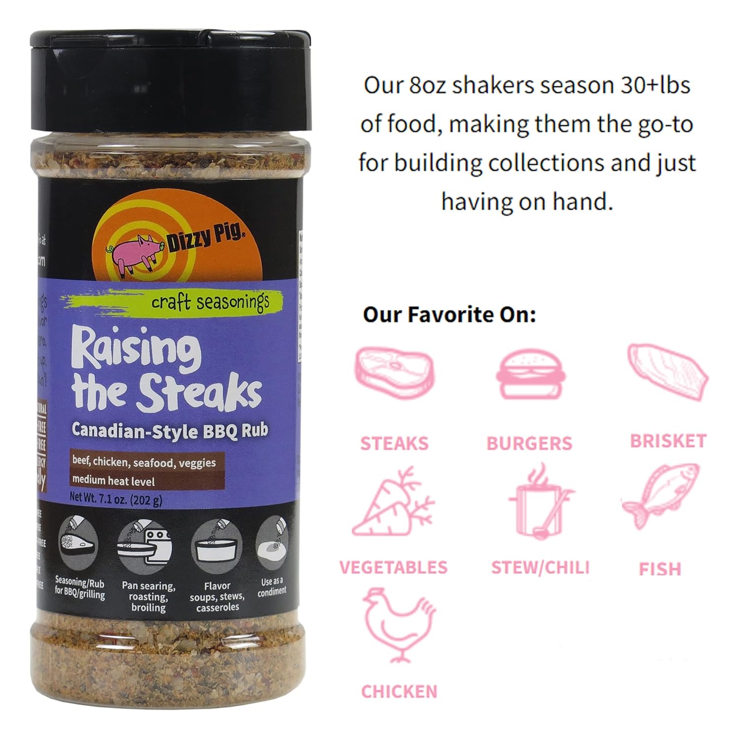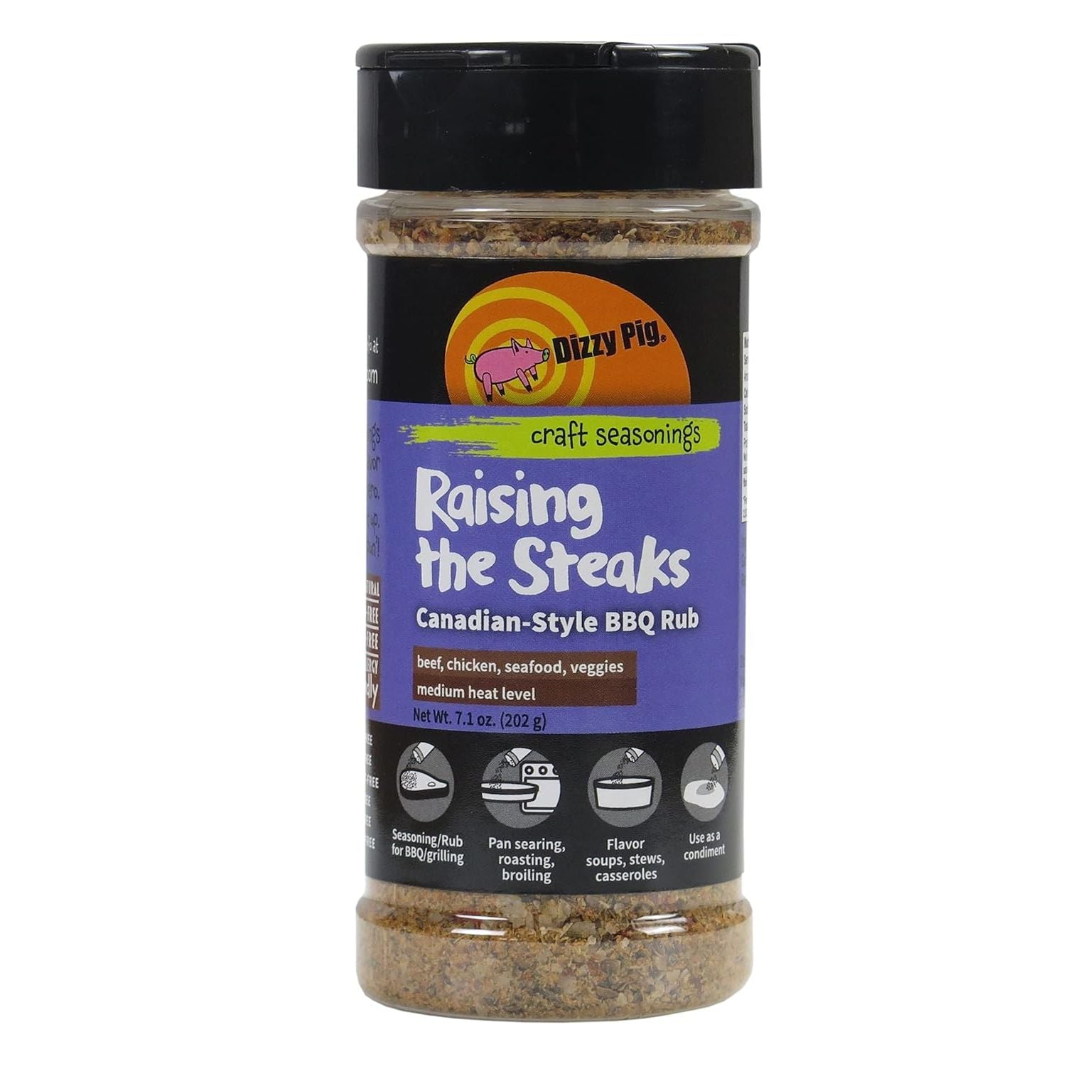 - While Montreal-style seasonings have been around for ages, Dizzy Pig truly reinvented the game with Raising the Steaks bringing a great balance of sharp and round flavors. It does have a higher salt content than our other blends.