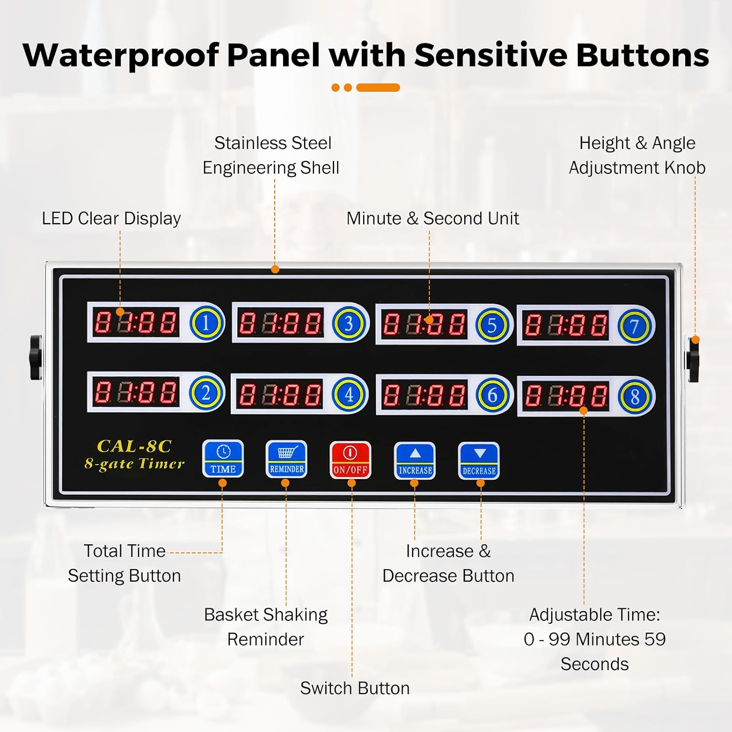 - BEAMNOVA 8-Channel Digital Kitchen Timer Commercial Cooking Fryer Reminder Loud Ring Alarm Stainless Steel Adjustable Volume
