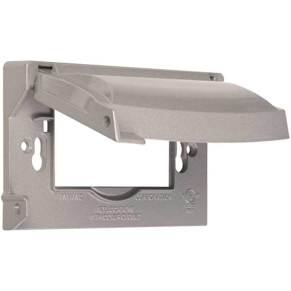 - BELL MX1250S 1-Gang Flip Weatherproof Cover, Universal Metal 12-in-1 Outlet Outdoor Receptacle Protector, Vertical/Horizontal, Gray