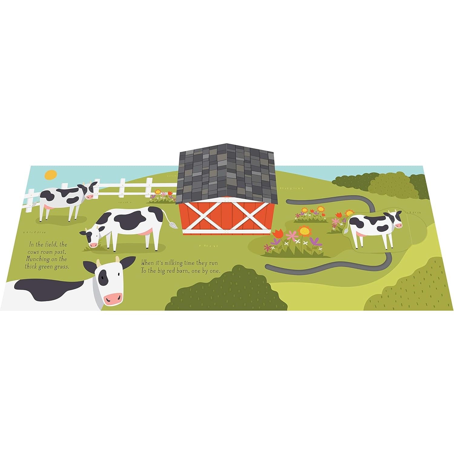 "On The Farm" is a 5-spread, moving parts and pop-up book featuring cute rhyming text about what goes on down on the farmyard machines to animals. The moving vehicles on every spread are fun for little hands to encourage dexterity and participation in the reading of the book itself.