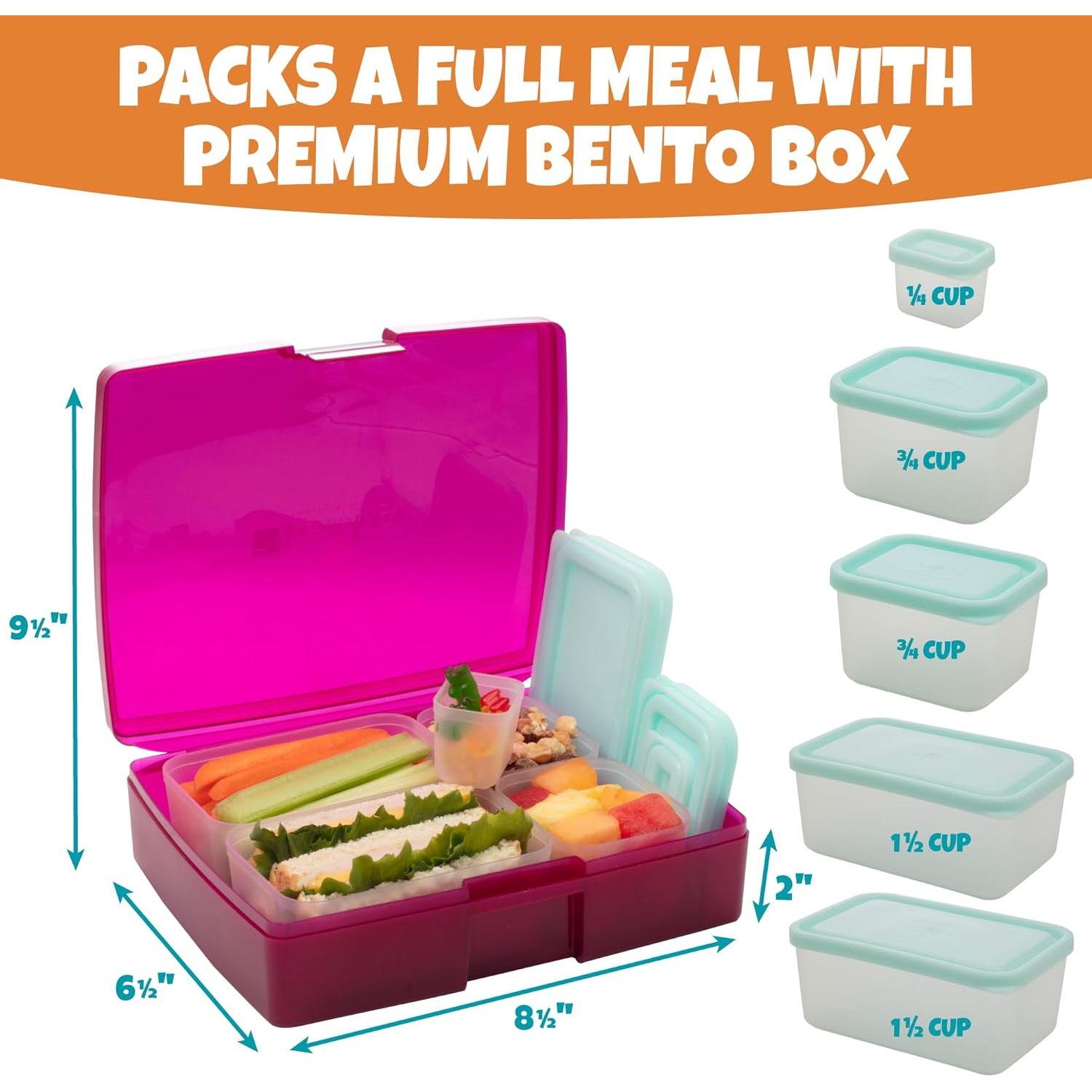 Bentology Bento Lunch Box Set w/ 5 Inner Removable Containers, Leak Proof, Food Prep & Snack Packing Compartments - Stackable, Microwave Safe Nesting Containers w Lids, Easy to Clean & Store