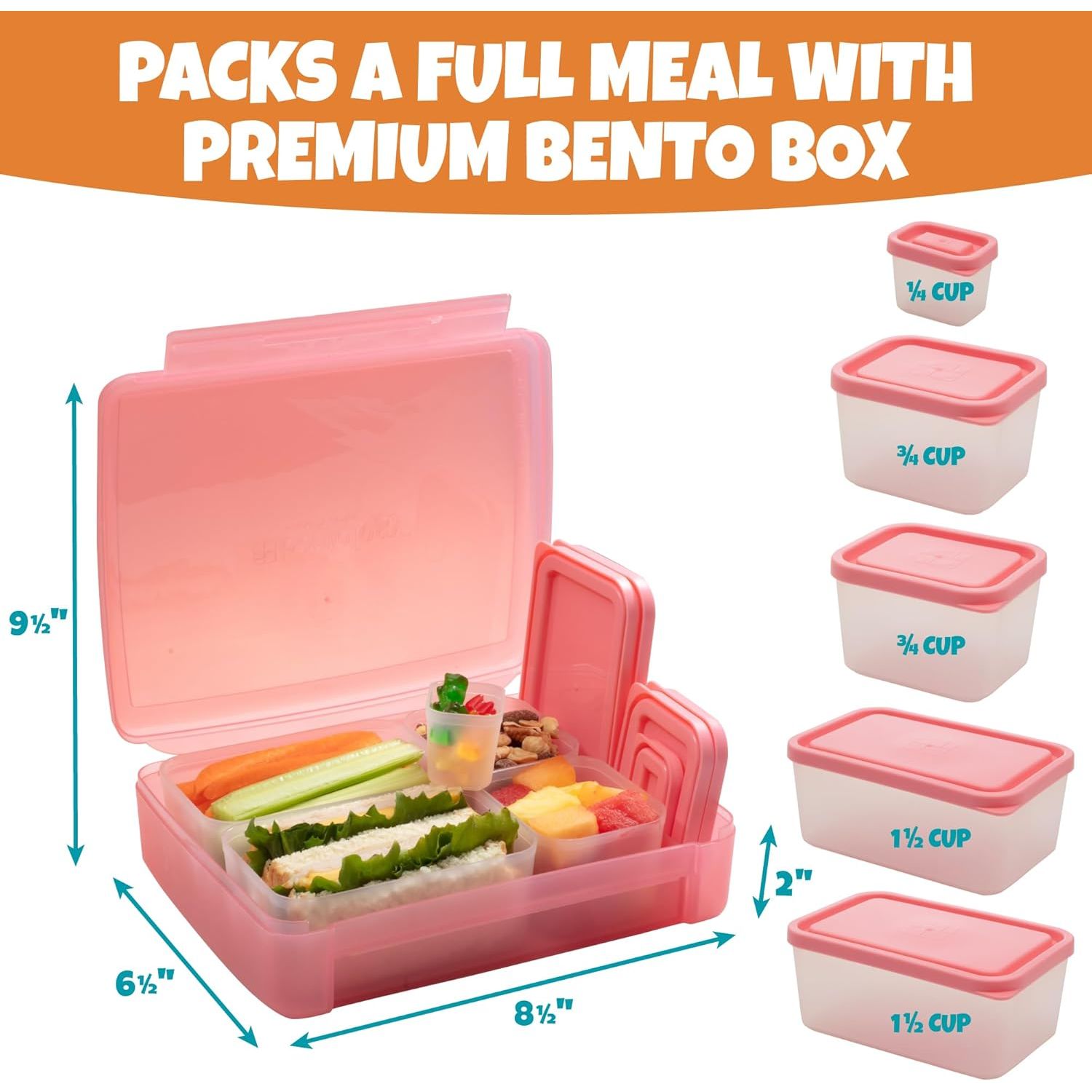Bentology Bento Lunch Box Set w 5 Leakproof Made-to-Size Snack Containers & Built-In Utensil Holder- Meal Prep Made Easy w Reusable, Kid's Back to School or Office- Durable, BPA Free, Dishwasher Safe