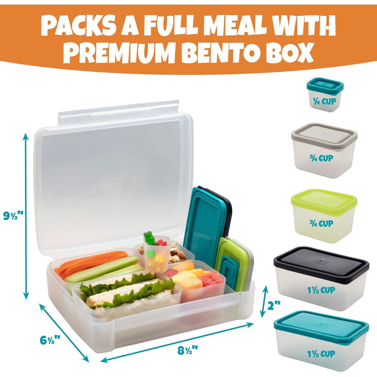 Bentology Bento Lunch Box Set w 5 Removable Nesting Containers- Adaptable Inner Compartment Portion Sizes- Meal Prep Snack Holders for Back to School, Leakproof Durable & BPA Free- Dishwasher Safe