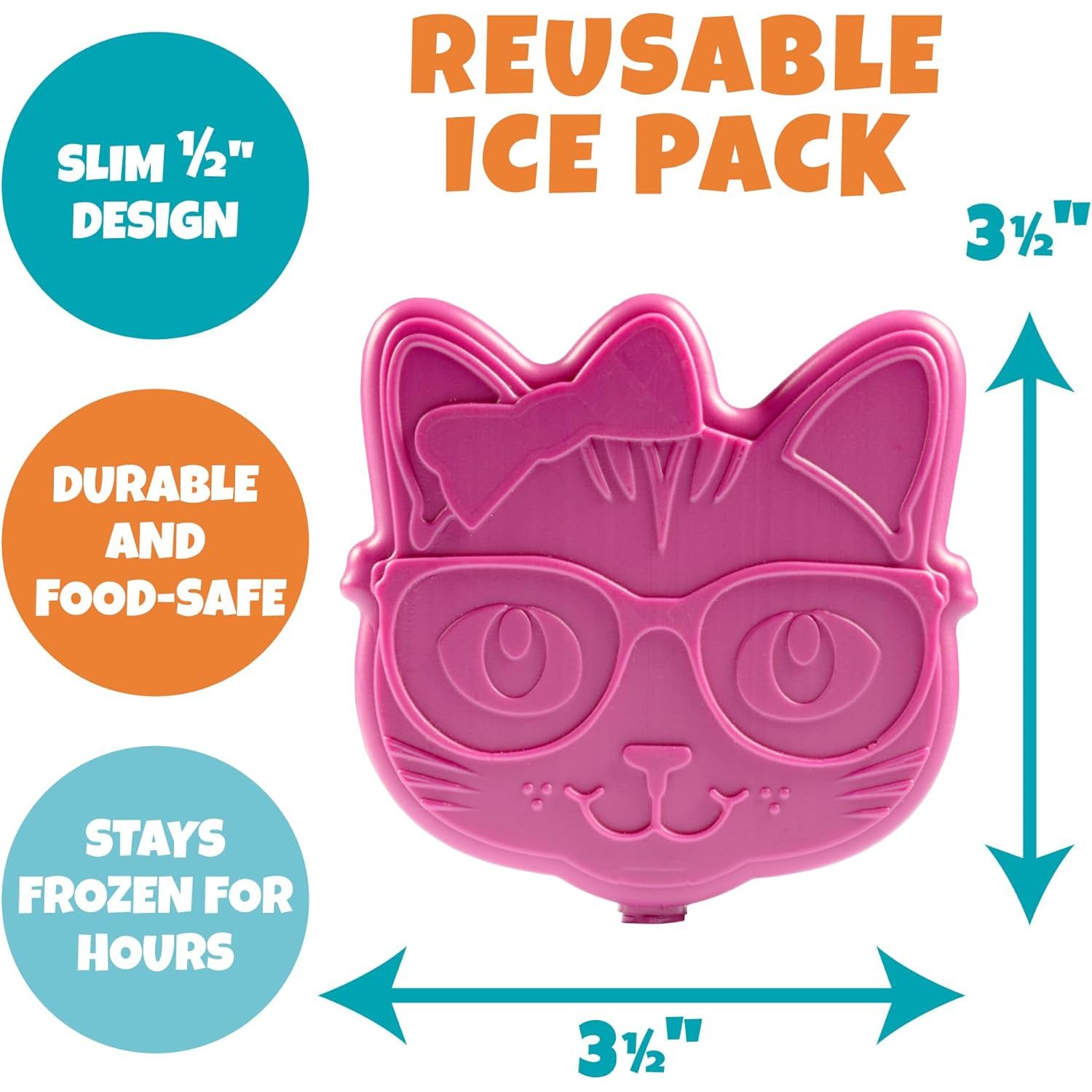 - Durable & Leak-Proof Hard Ice Pack: This adorable kitty shaped bonus ice cooler is food safe and long-lasting. Bentology's hard ice packs quickly freeze and will not melt or leak because of its hard, protective material. Our slim design is space-saving leaving more room for snacks, and other goodies!
