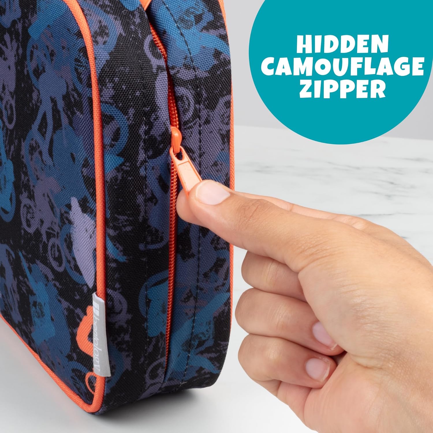 • HIDDEN CAMOUFLAGE ZIPPER: This premium style bag uses a hidden camouflage zipper that elevates your mealtime experience.