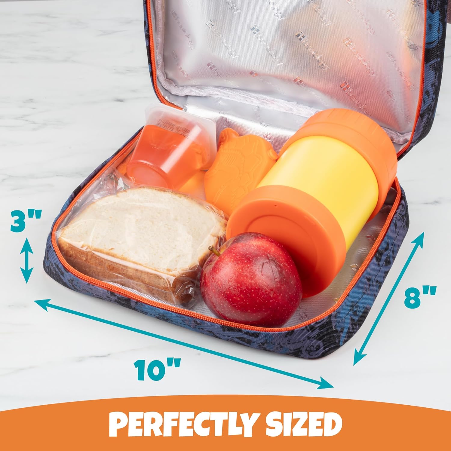 Bentology Lunch Bag for Boys- Kids Insulated Durable Lunchbox Tote Fits Bento Boxes, Containers, Jars & Water Bottles- Reusable School Lunch Sleeve w Clip on Handle- Keep Food Hotter or Colder Longer