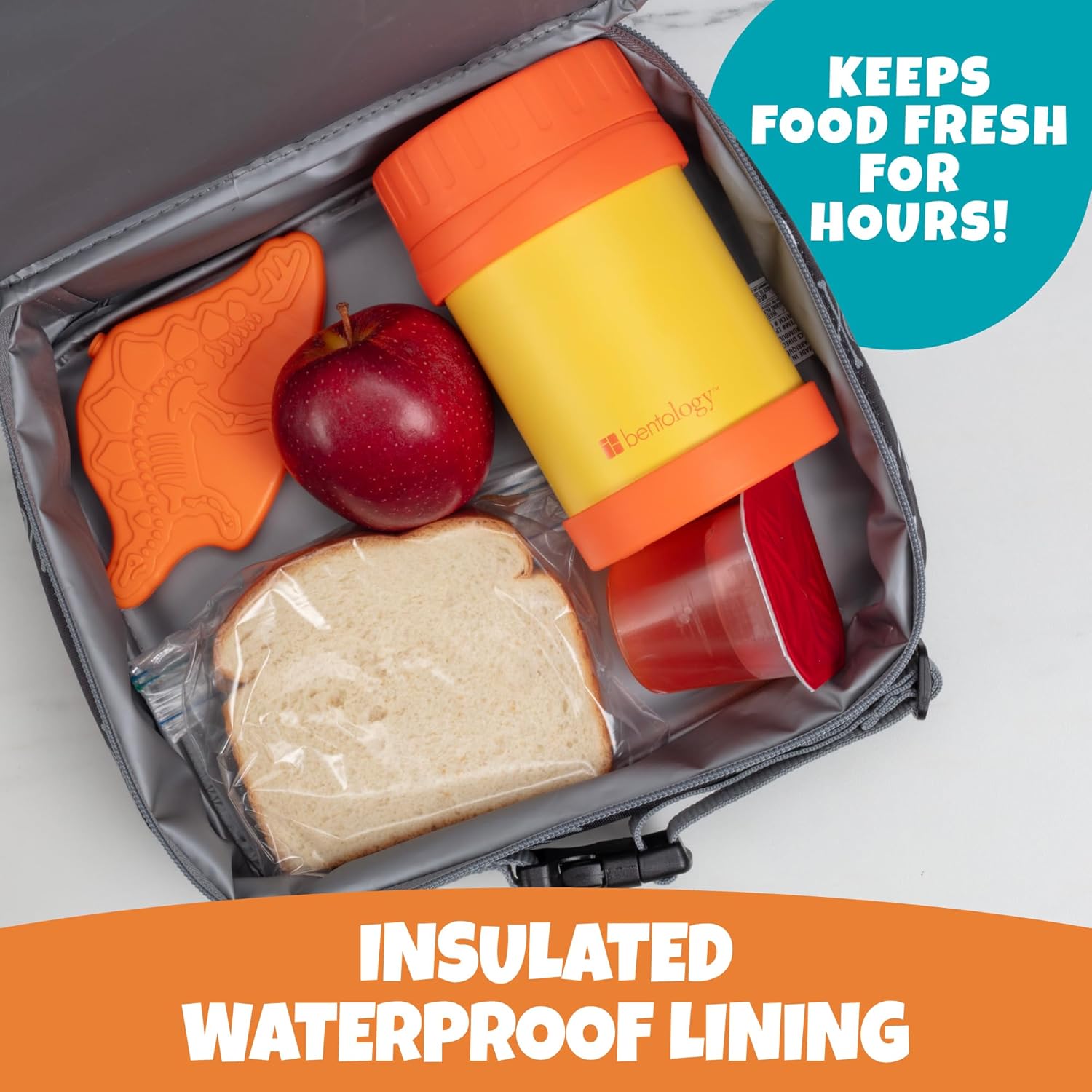 - Bentology Lunch Bag for Boys- Kids Insulated Durable Lunchbox Tote Fits Bento Boxes, Containers, Jars & Water Bottles- Reusable School Lunch Sleeve w Clip on Handle- Keep Food Hotter or Colder Longer