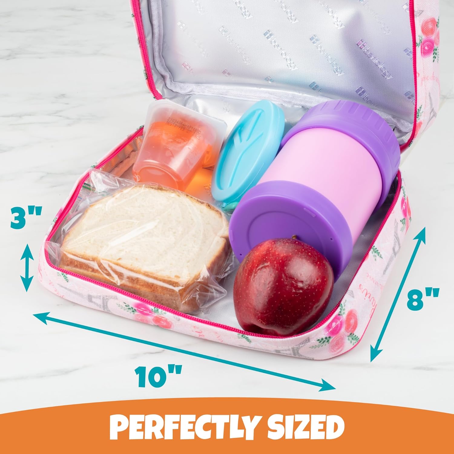 Bentology Lunch Box for Kids- Insulated, Waterproof, Durable Tote Bag Lunchbox fits Bento Boxes, Containers, Jars, Bottles- Keeps Food Hotter or Colder Longer- Back To School Reusable Sleeve For Girls