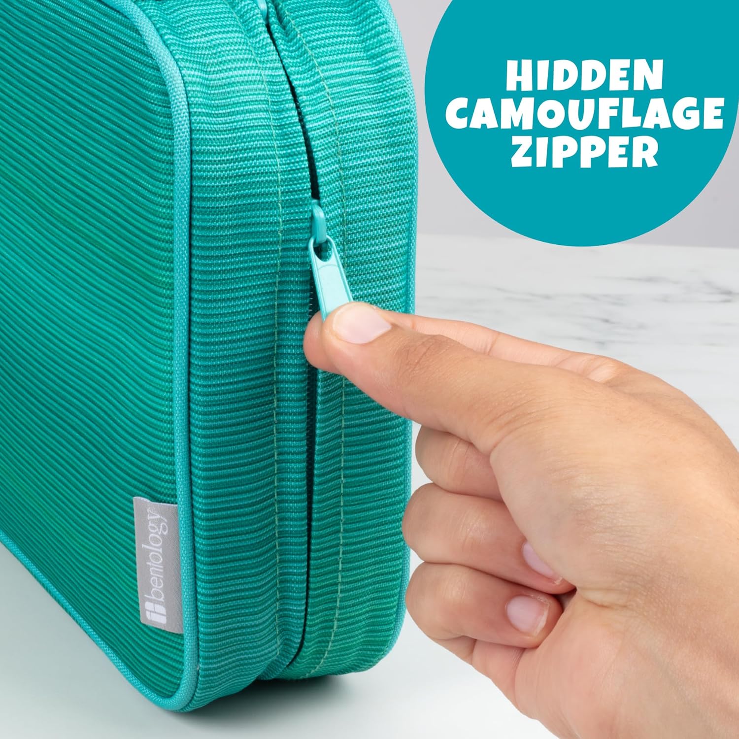 • HIDDEN CAMOUFLAGE ZIPPER: This premium style bag uses a hidden camouflage zipper that elevates your mealtime experience.
