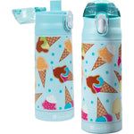 Bentology Stainless Steel 13 oz Reusable Water Bottle for Kids, Ice Cream - Double Wall Insulated, Spill Proof Lid w/Built-in Straw- Keep Liquids Hot or Cold For Hours- Fits in Lunch Boxes & Bags