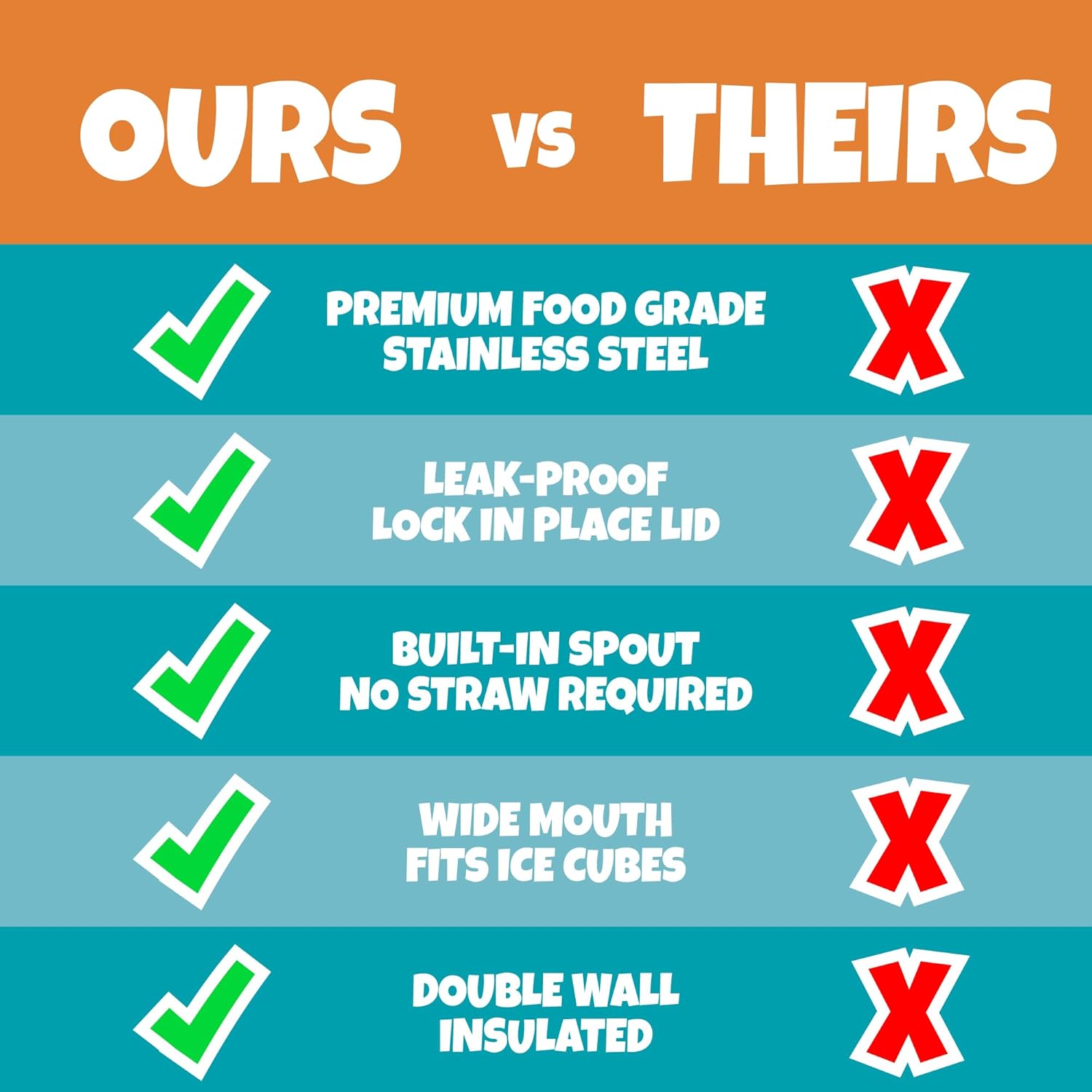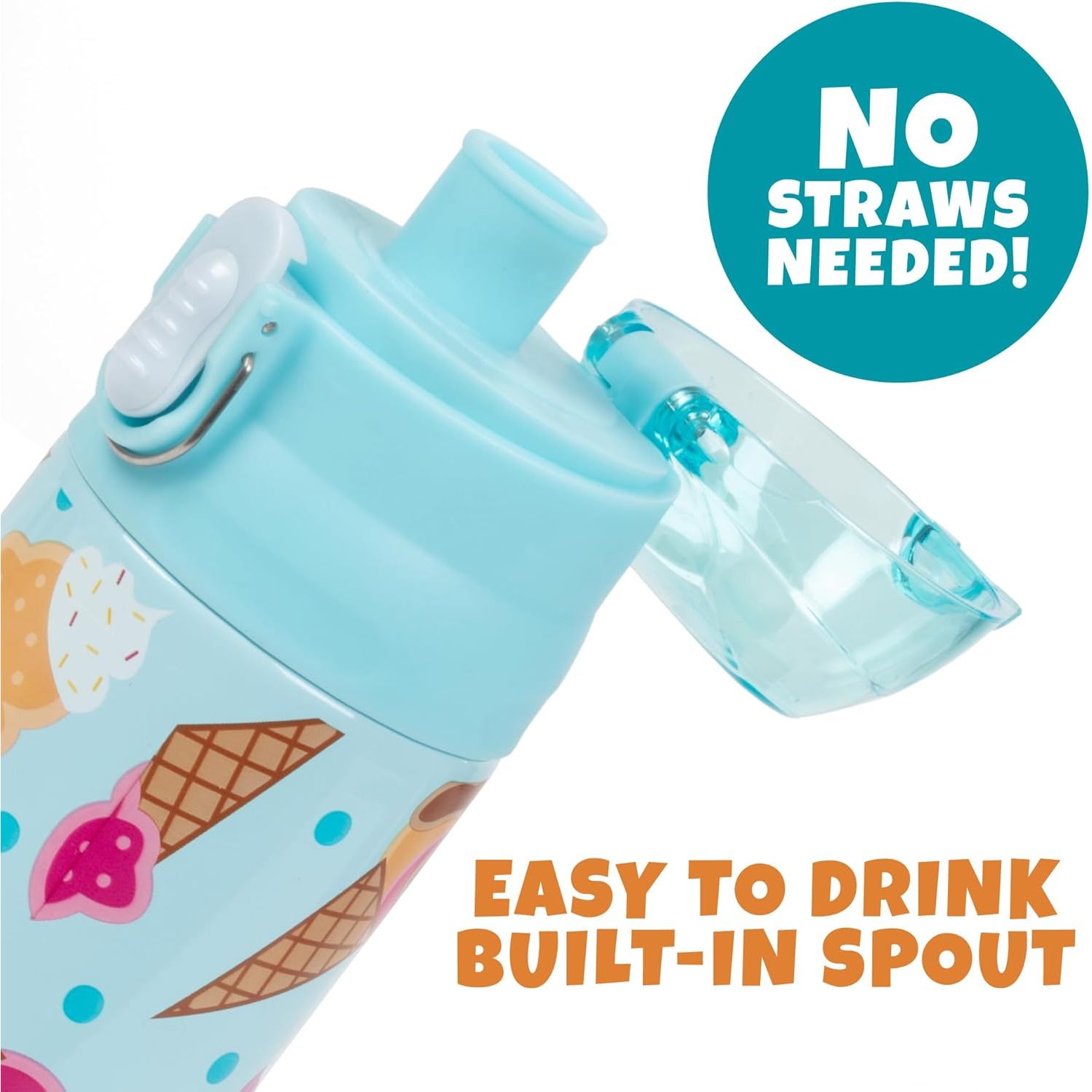 - Bentology Stainless Steel 13 oz Reusable Water Bottle for Kids, Ice Cream - Double Wall Insulated, Spill Proof Lid w/Built-in Straw- Keep Liquids Hot or Cold For Hours- Fits in Lunch Boxes & Bags