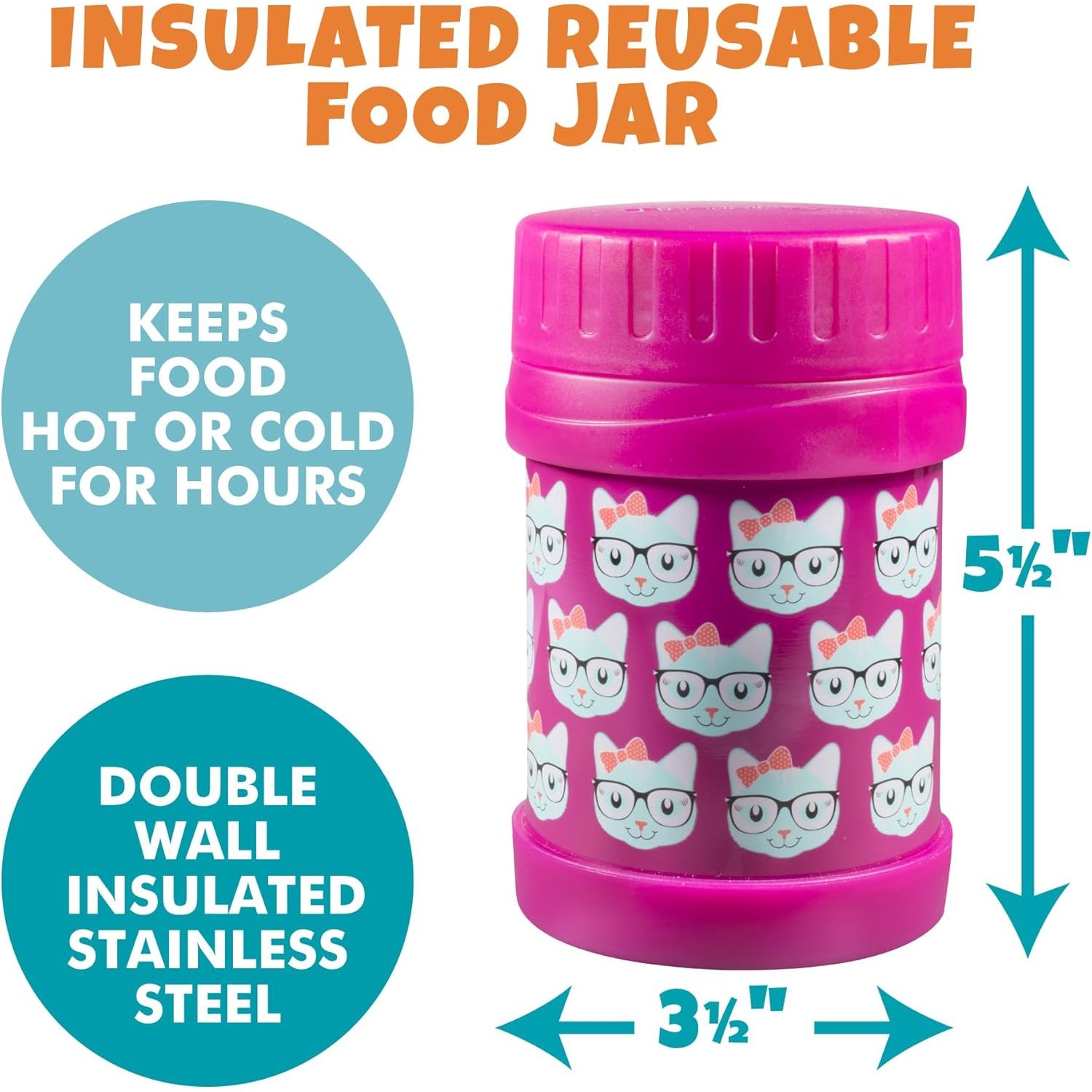 • Kid-Friendly Reusable Food Jar: This adorable premium Kitty cat pink themed food jar keeps food hot or cold for hours! Reduce your waste with this eco-friendly and resuable jar for girls and boys! Great for Ages 3+