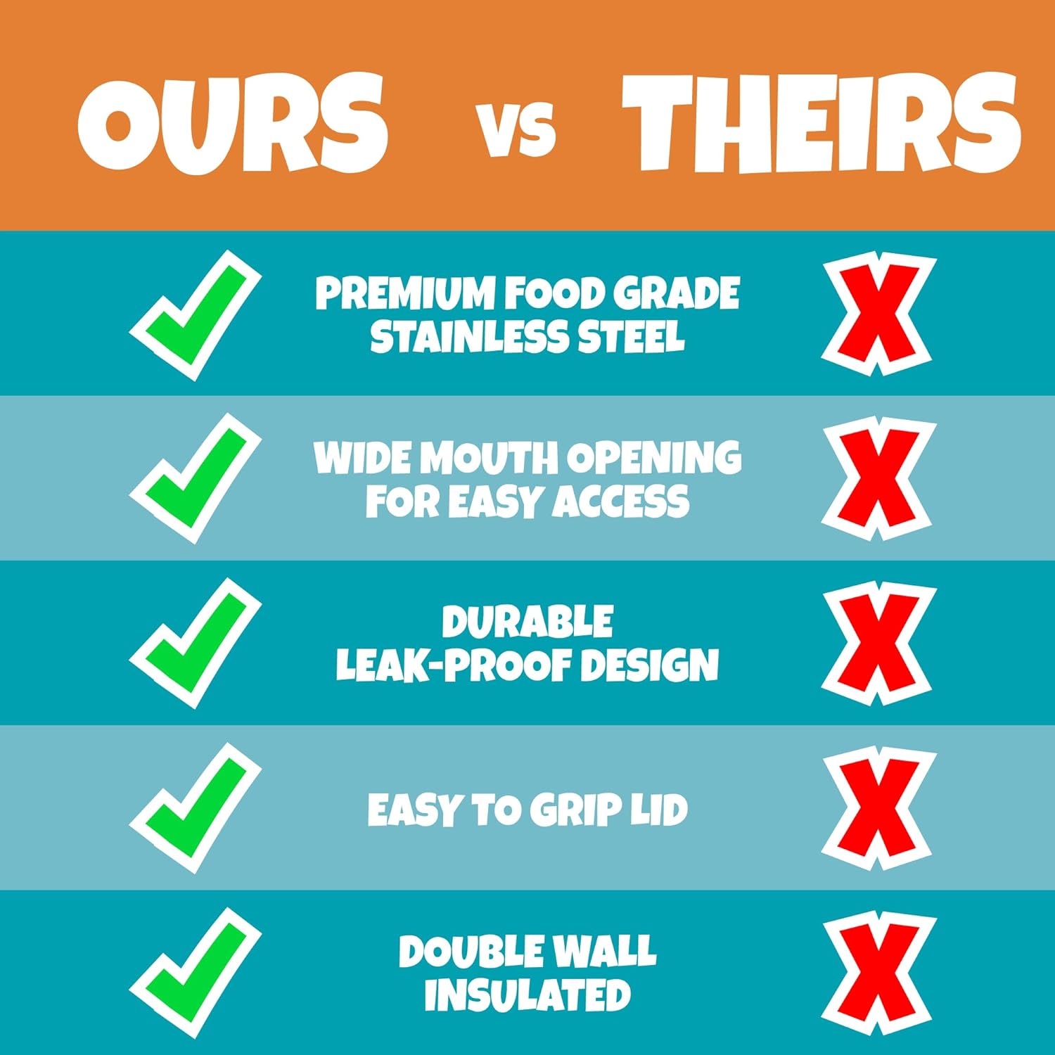 - Bentology Stainless Steel Insulated 13oz Lunch Jar for Kids- Large Leak Proof, thermos Storage Keeps for Hot or Cold Food, Soups, Liquids w Wide Mouth- BPA Free for Back to School Lunch Boxes, Bags
