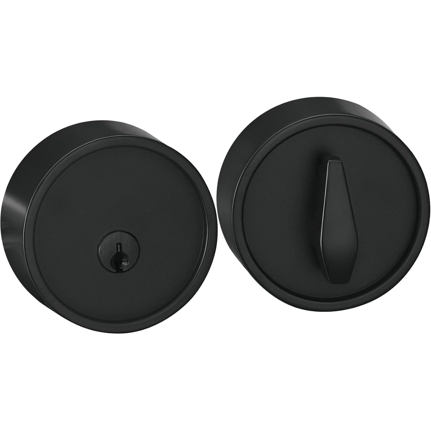 - Finished in durable powder-coated iron black, fits all size doors and no pre-drilled bore required on door.
