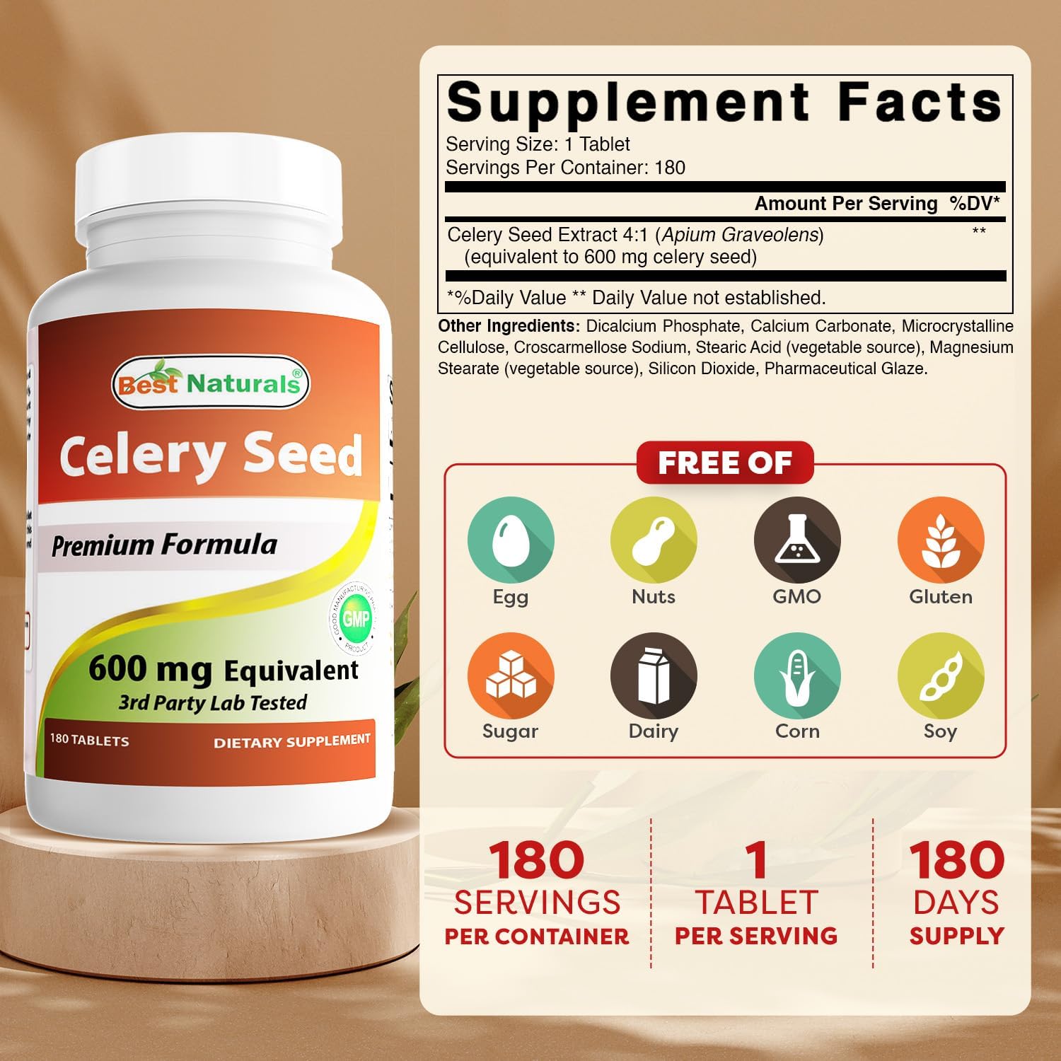- Best Naturals Celery Seed 600 Mg Tablet, 180 Count (817716014401)