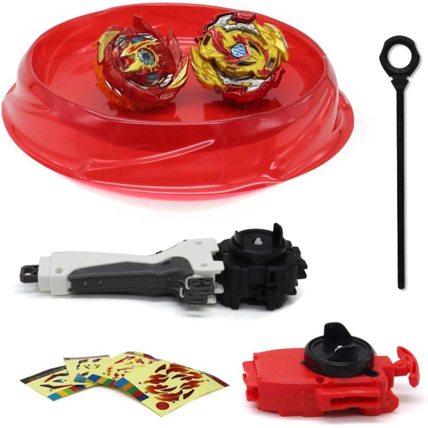 - Bey Battle Tops Metal Fusion Burst Turbo Gyro Evolution Set with 4D Launcher Grip and Stadium-Red