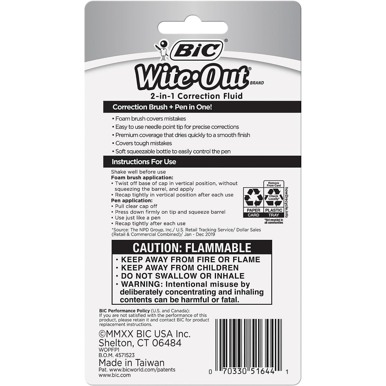 - BIC 15ml Bottle Wite-Out 2 in 1 Correction Fluid (BICWOPFP11),White