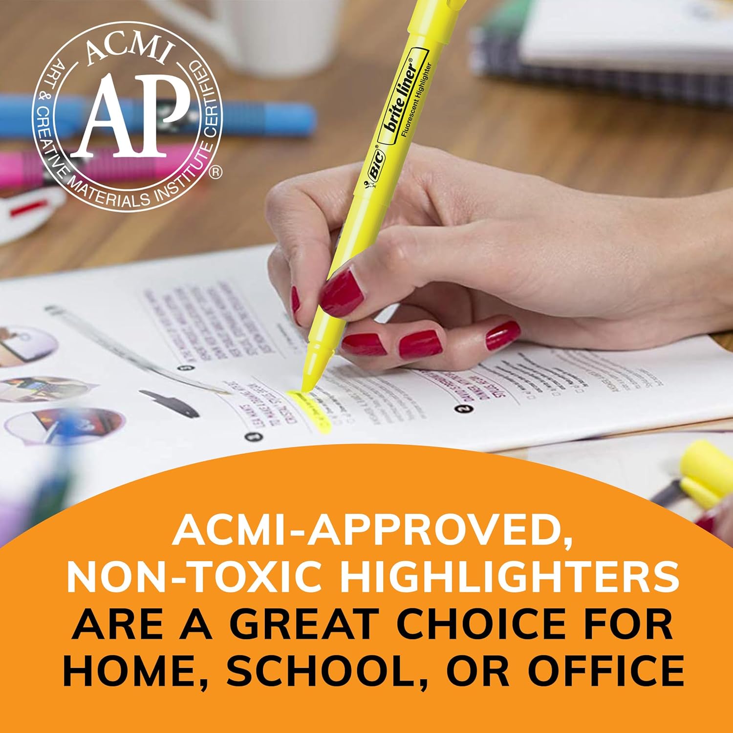 - ACMI-approved highlighters are a perfect addition to your art, school or office supplies