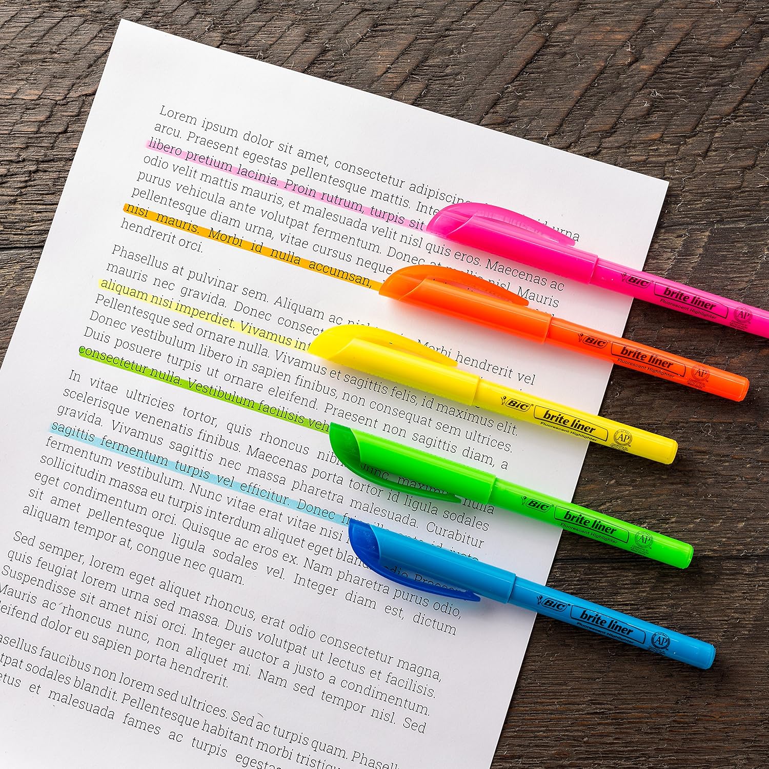 Make organization fun and easy with the BIC Brite Liner Orange Highlighter Set. These highlighters have a chisel tip for broad highlighting or fine underlining, making them perfect for highlighting school or office documents. BIC's highlighter markers use translucent ink to emphasize what's important on the page without obscuring the text below. Reliable and long-lasting, each BIC Brite Liner highlighter writes for up to eight hours without a cap and does not dry out, so you can work with confidence. The convenient pen-shaped design lets you easily grip and comfortably use the highlighters chisel tip to organize your notes or underline passages in textbooks, notebooks and documents. Looking for classic highlighters for journals or orange marker sets for adults? BIC Brite Liner Orange Highlighters add a fun pop of color to your art, office or school supplies. Each pack contains 12 orange chisel tip highlighter markers. BIC highlighters are ACMI-approved for a high-quality, safe product you can trust. Whether you're emphasizing text or just feel like getting creative, choose BIC Brite Liner Highlighters.