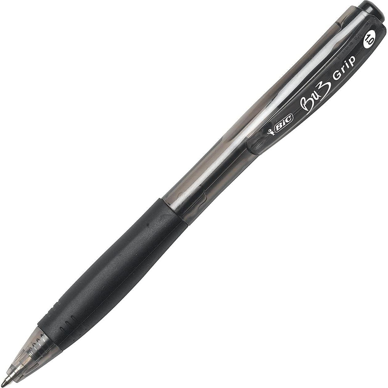 - BIC BU3 Grip Retractable Ballpoint Pen, Medium Point (1.0mm), Black, Retractable Black Ballpoint Pens for School and Office, 12-Count