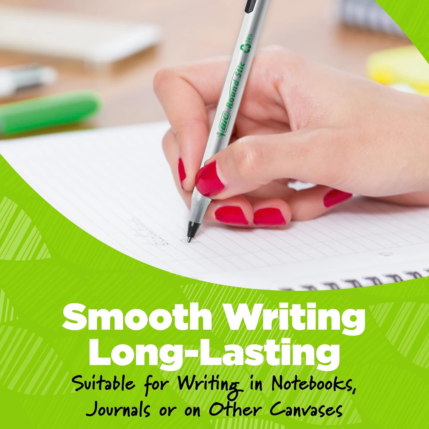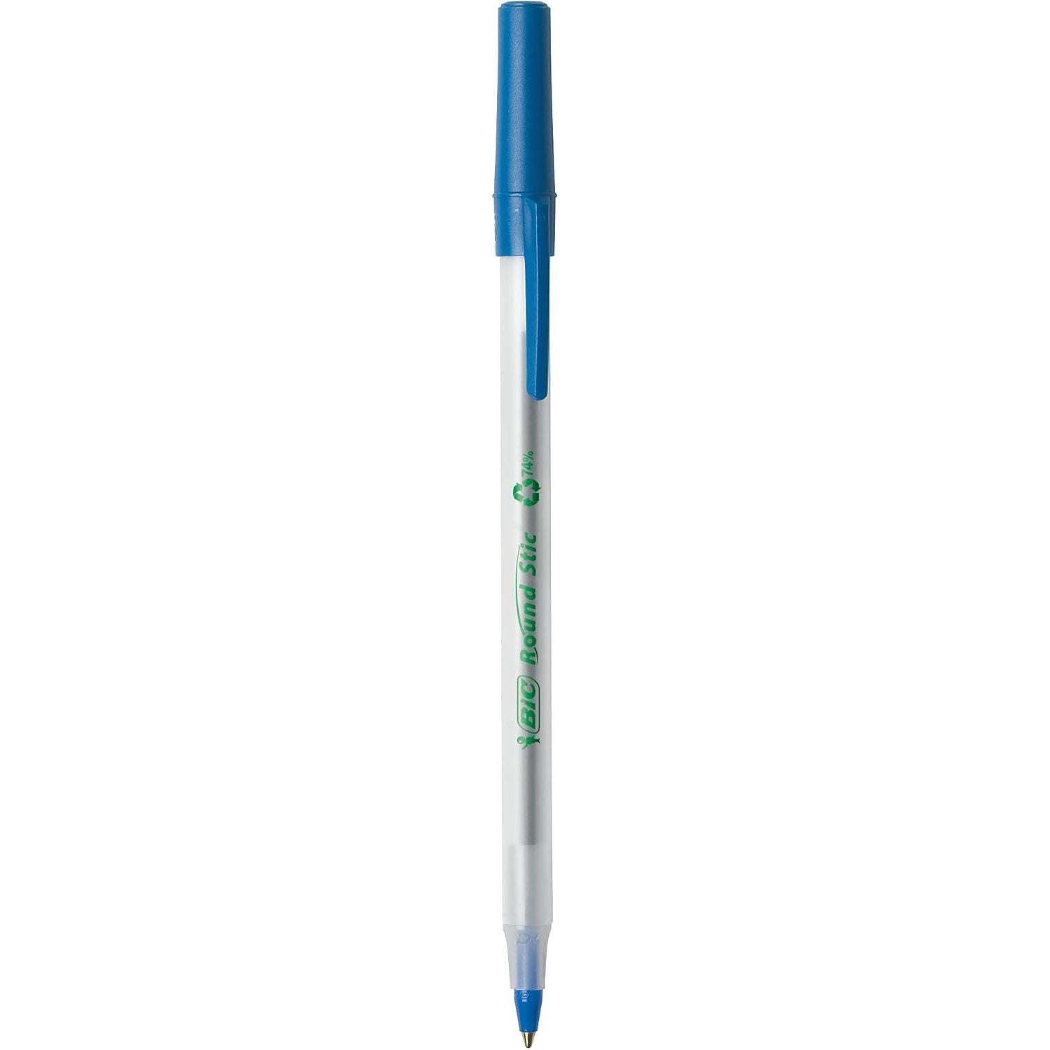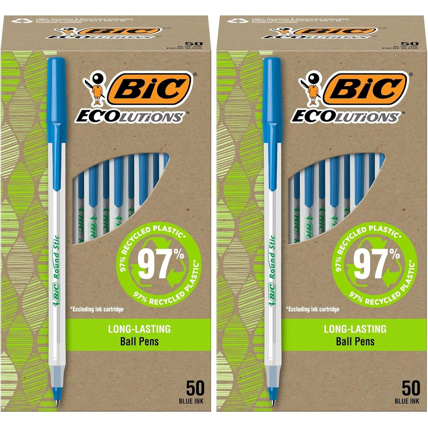 - BIC Ecolutions Round Stic Ballpoint Pens, Medium Point (1.0mm), 50-Count Pack, Blue Ink Pens Made from 97% Recycled Plastic