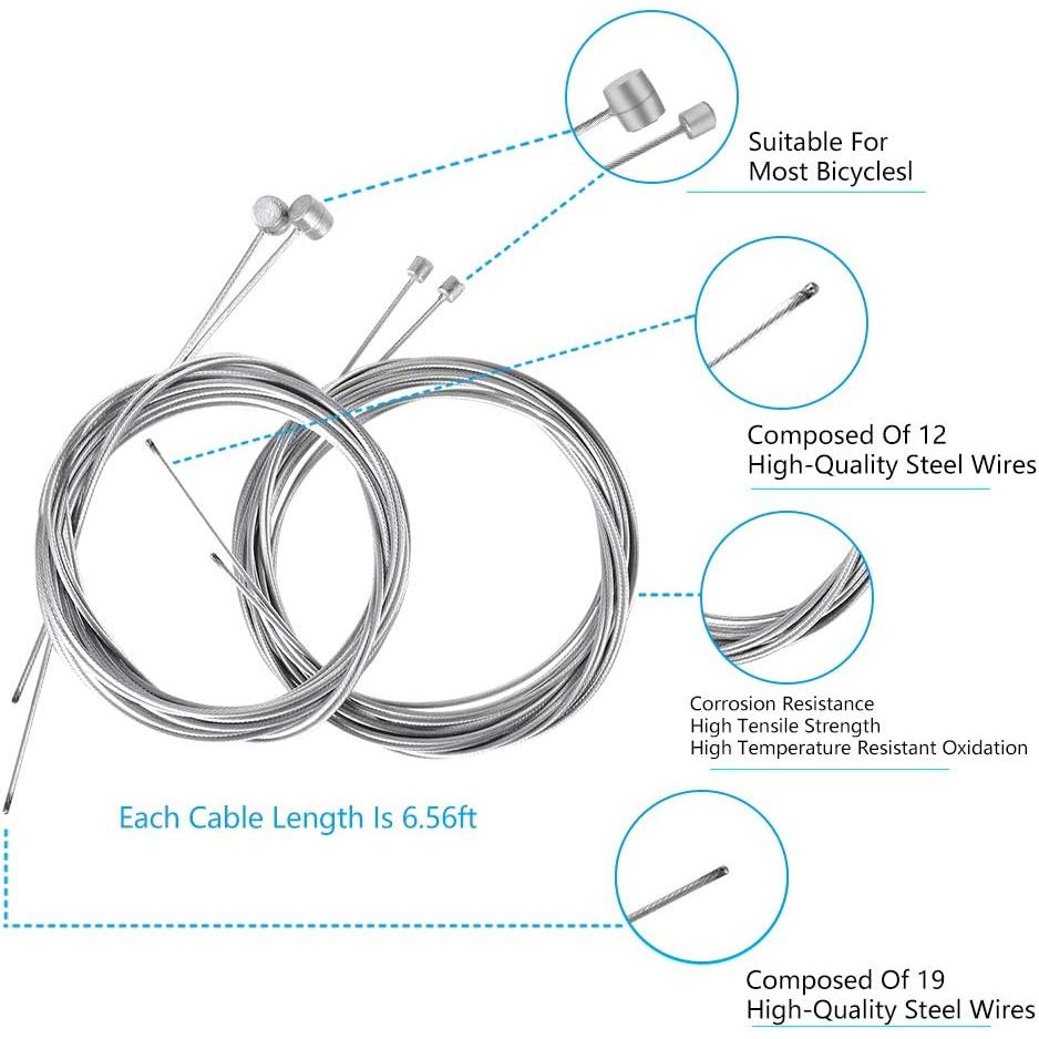 - 【Complete Inner Replacement Set】You will get 2pcs brake /shift cables 2000 mm/6.56 ft. In addition, you may also get a set of free accessories, including: 2×sheath ferrules, 4×end caps,4 x Housing brake Cable end caps,4 x pipe shift Cable end caps, 4×O-rings.
