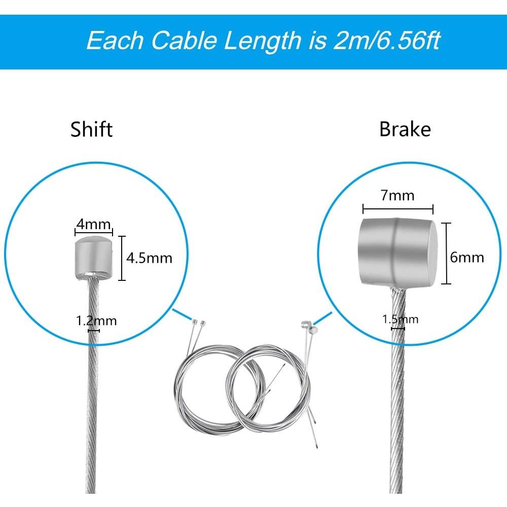 - 【Easy to Install】Each brake / shift cable is 2M/6.56 ft long and can meet different kind of bike needs. If the cables are too long, they can be cut to the length you need. Be remember to use the cable end caps to avoid scratching and keep cable ends nice and tidy.