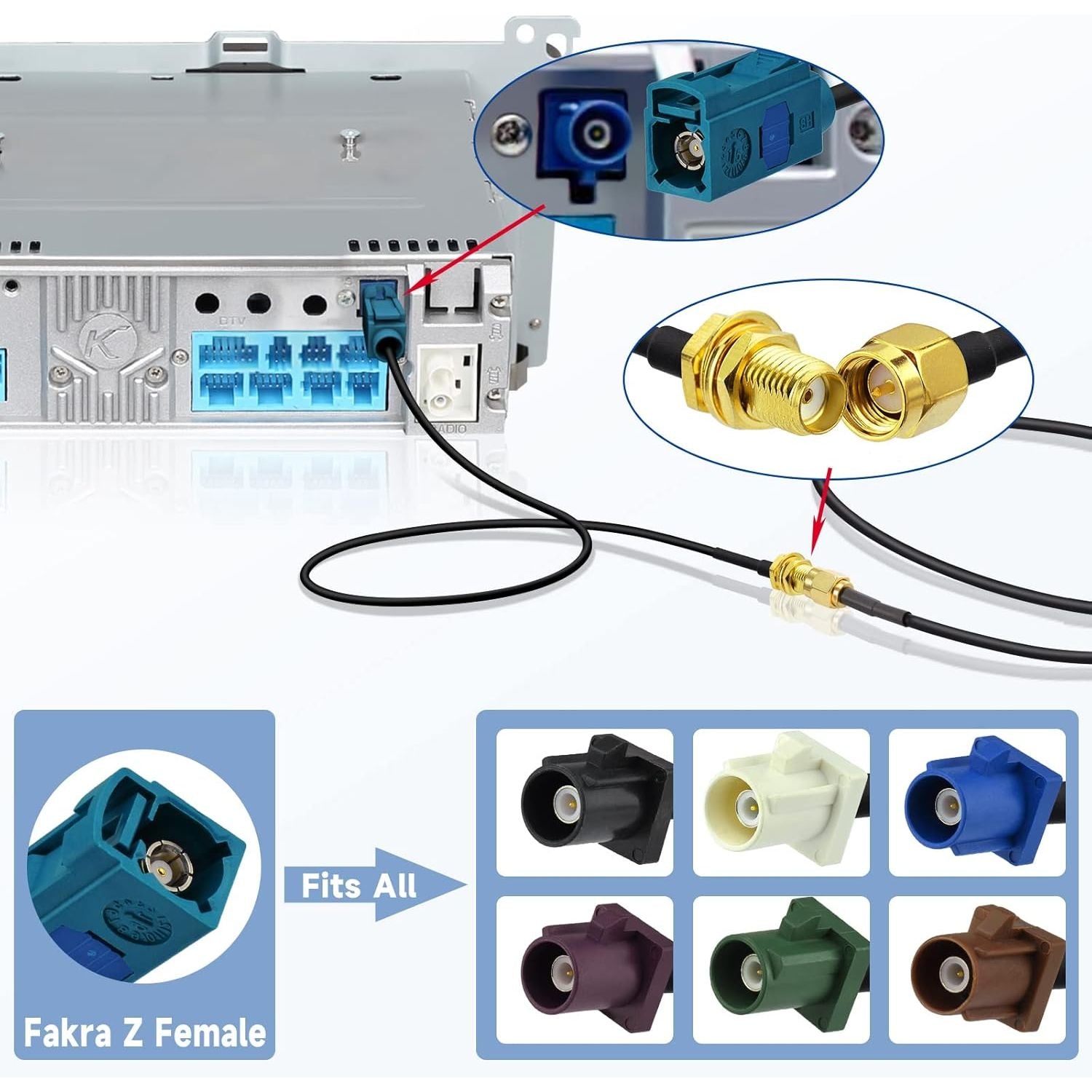 - Bingfu Fakra Z Female to SMA Female Vehicle Antenna Adapter Cable 30cm 12 inch for Car Stereo Android Head Unit GPS Navigation FM AM Radio Sirius XM Satellite Radio 4G LTE Telematics Bluetooth Module