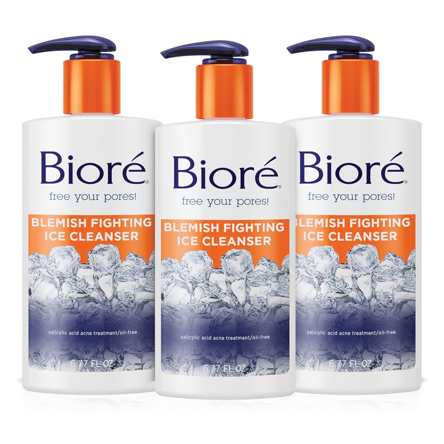Biore Blemish Fighting Ice Cleanser Face Wash with Salicylic Acid, Clears and Helps Prevent Acne Breakouts, Cools & Refreshes Skin, Oil Free, 6.77 Oz