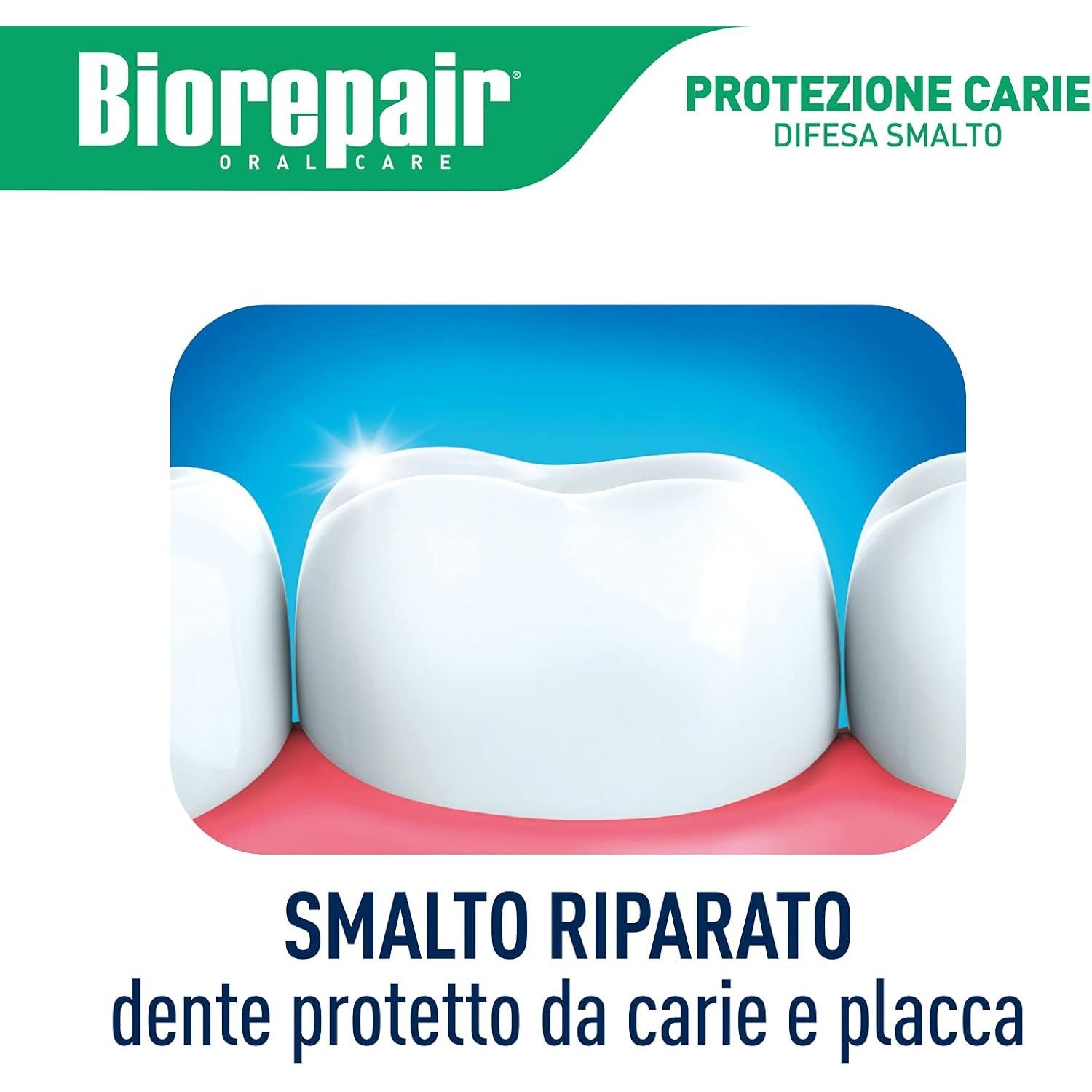 Biorepair is the toothpaste that actually repairs tooth enamel! Although on the surface most teeth look healthy, daily wear and tear causes hundreds of tiny flaws to appear in tooth enamel. Over time, plaque and bacteria can form in these flaws and can lead to more serious damage such as tooth decay and sensitivity. Biorepair works to repair tooth enamel, prevent decay and reduce sensitivity by filling in the tiny cracks and binding to the structure of the enamel. Due to its formula rich in microRepair, Biorepair Total Protective Repair repairs the enamel surface, protecting the natural health of the teeth from plaque, tartar build-up and tooth decay and acid erosion. EFFECTS: - prevents tooth decay - prevents plaque - removes and prevents tartar build-up - keeps fresh breath - repairs enamel and dentin microscratches IMPORTANT: children under six years of age can use Biorepair without adult supervision due to the absence of Fluoride.
