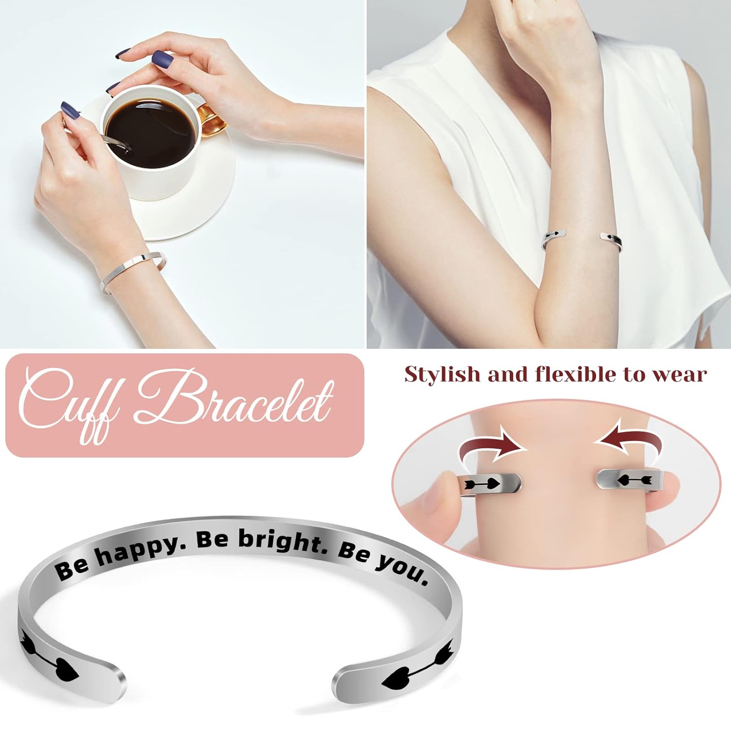 - Personalized Birthday Gifts: The ladies' birthday gift set includes all the items she desires, customized just for her. She'll love the subtle and classy cuff bracelet, a luxurious piece that she can wear every day to feel elevated and sophisticated. The mirror in our gift set is perfect for touching up her makeup and maintaining her refined beauty. Give her a truly thoughtful and personalized gift that she'll appreciate every day.
