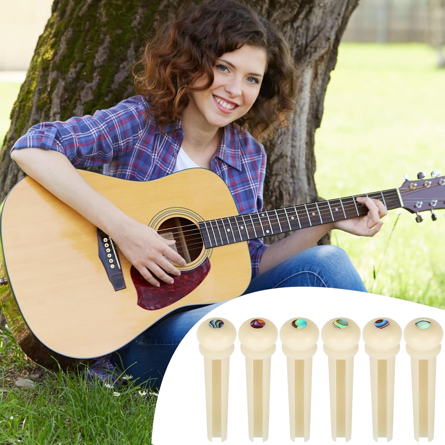 - Blisstime 6pcs Unbleached Guitar Bone Bridge Pins Natural Bone Color Replacement Parts with Abalone Dot