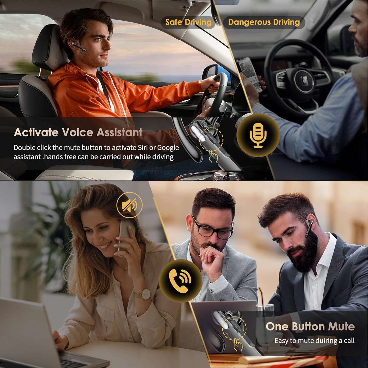 - Bluetooth Headset, Wireless Bluetooth Earpiece V5.0 Hands-Free Earphones with Built-in Mic for Driving/Business/Office, Compatible with iPhone and Android (Gray)