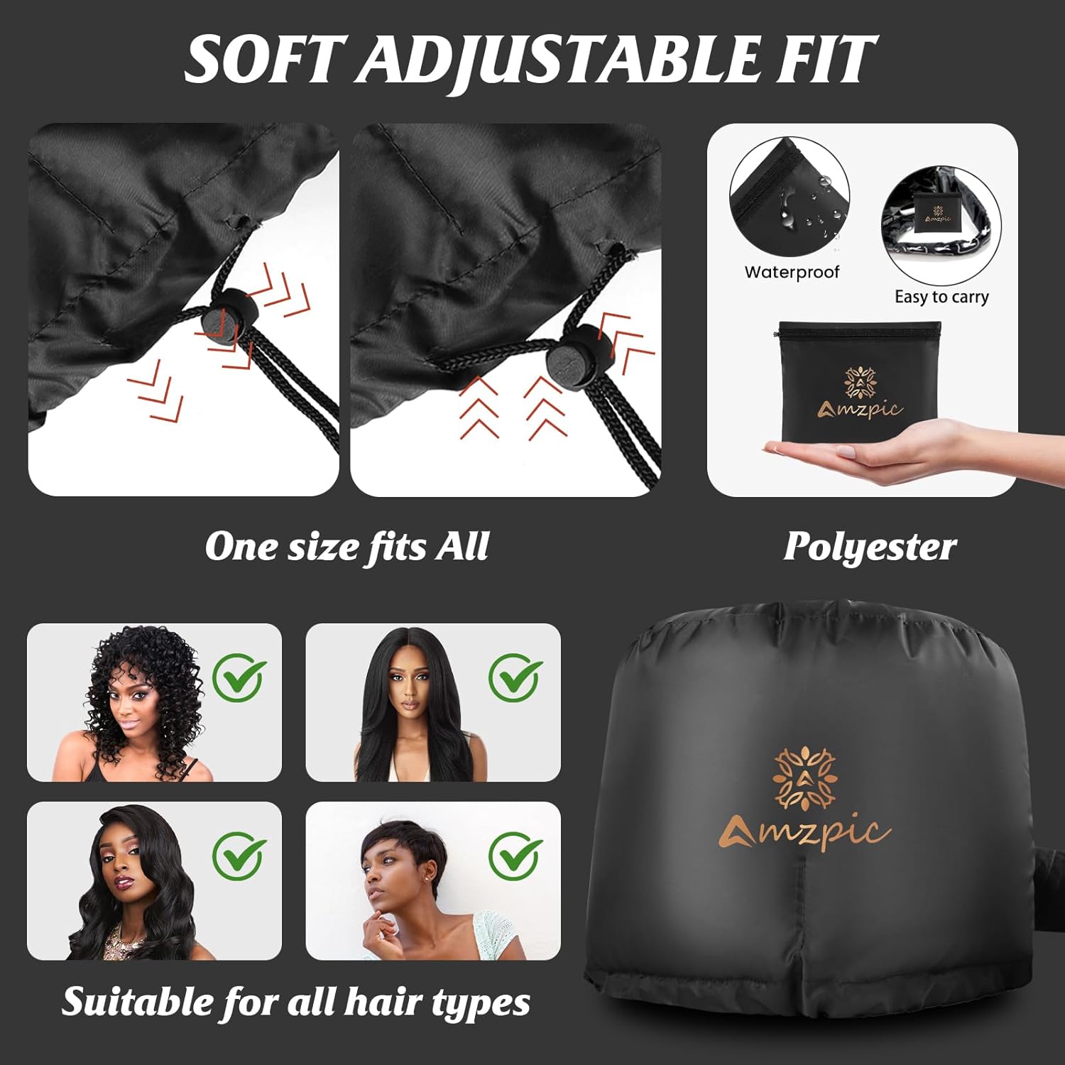 - 【More Comfortable】With every purchase of Amzpic soft bonnet hood, you will get a complimentary towel-texture heat protection headband that covers the neck, ears, and forehead to prevent heat and irritation issues. With all this, you can now enjoy longer hair treatment sessions.