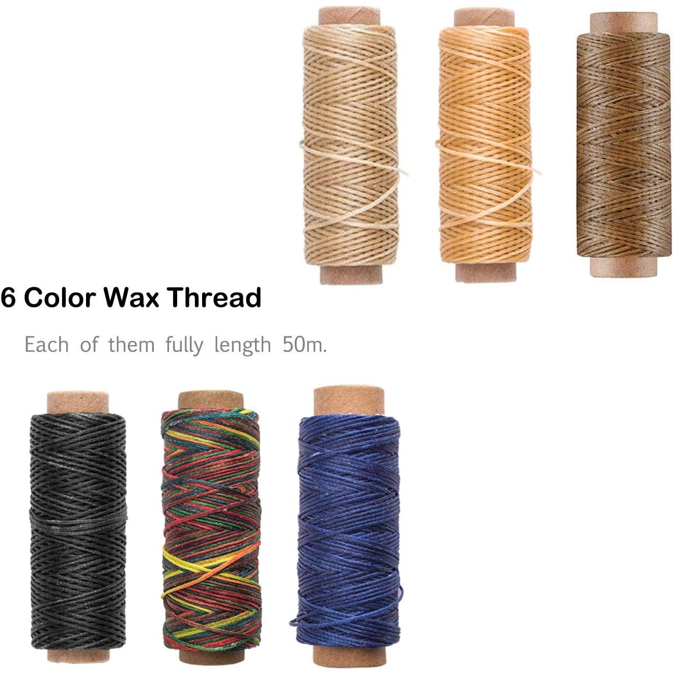 - SIX FLAT WAXED THREAD(book binding thread): The 6 rolls of waxed threads are in 6 different colors, beige, khaki, brown, royalblue, colours and black, each is approx. 1 mm (150D) in diameter