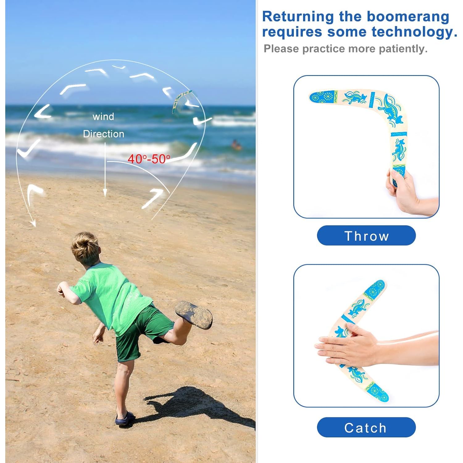 - THE PERFECT GIFT: The boomerang toy is a great choice to give to your family or friends as a Christmas, birthday or Thanksgiving gift. Children and adults can have fun with it. Throwing it back and forth can promote parent-child relationship.