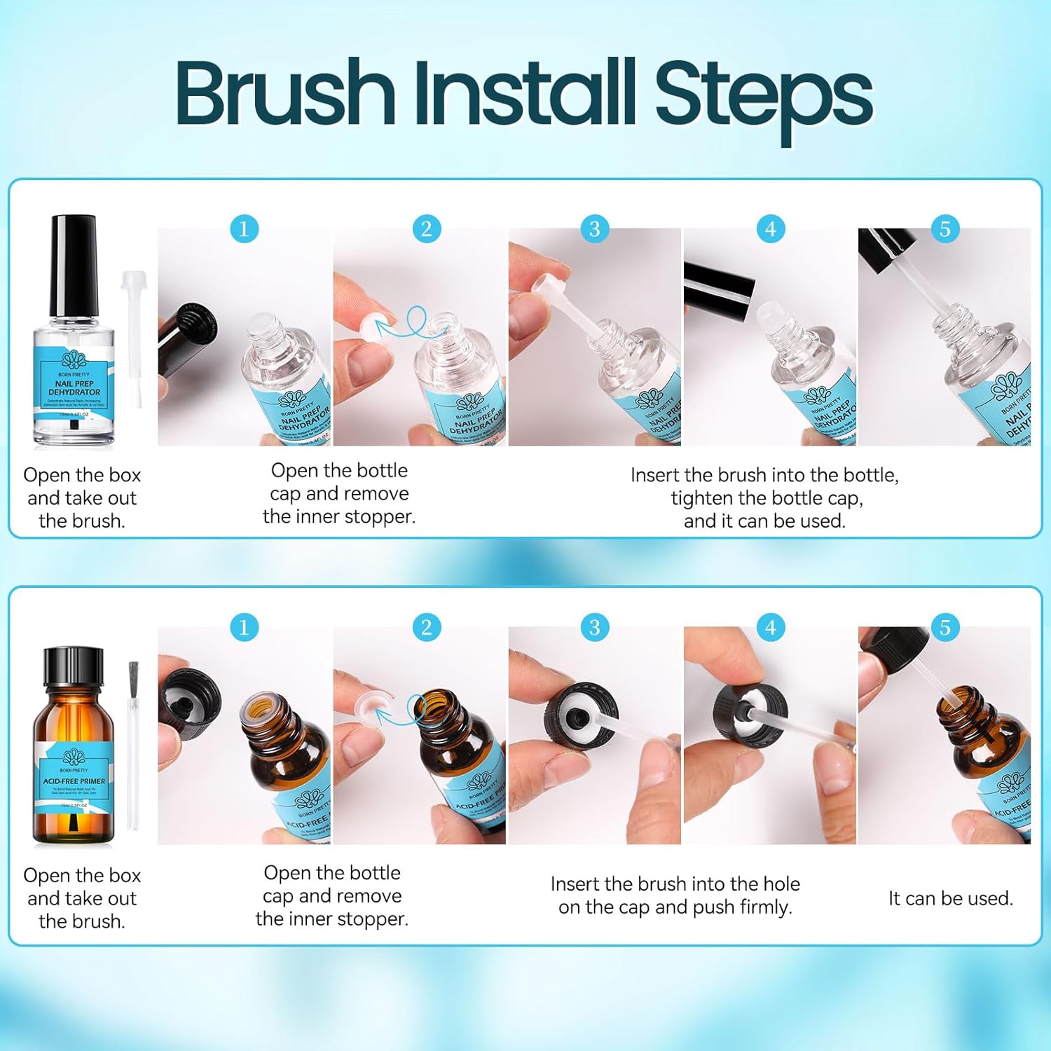 - BALANCE & PREVENT: BORN PRETTY nail protein bond is perfect to reduce nail oil & to create a strong foundation! Use the nail gel primer for an acid free nail base for gel application.