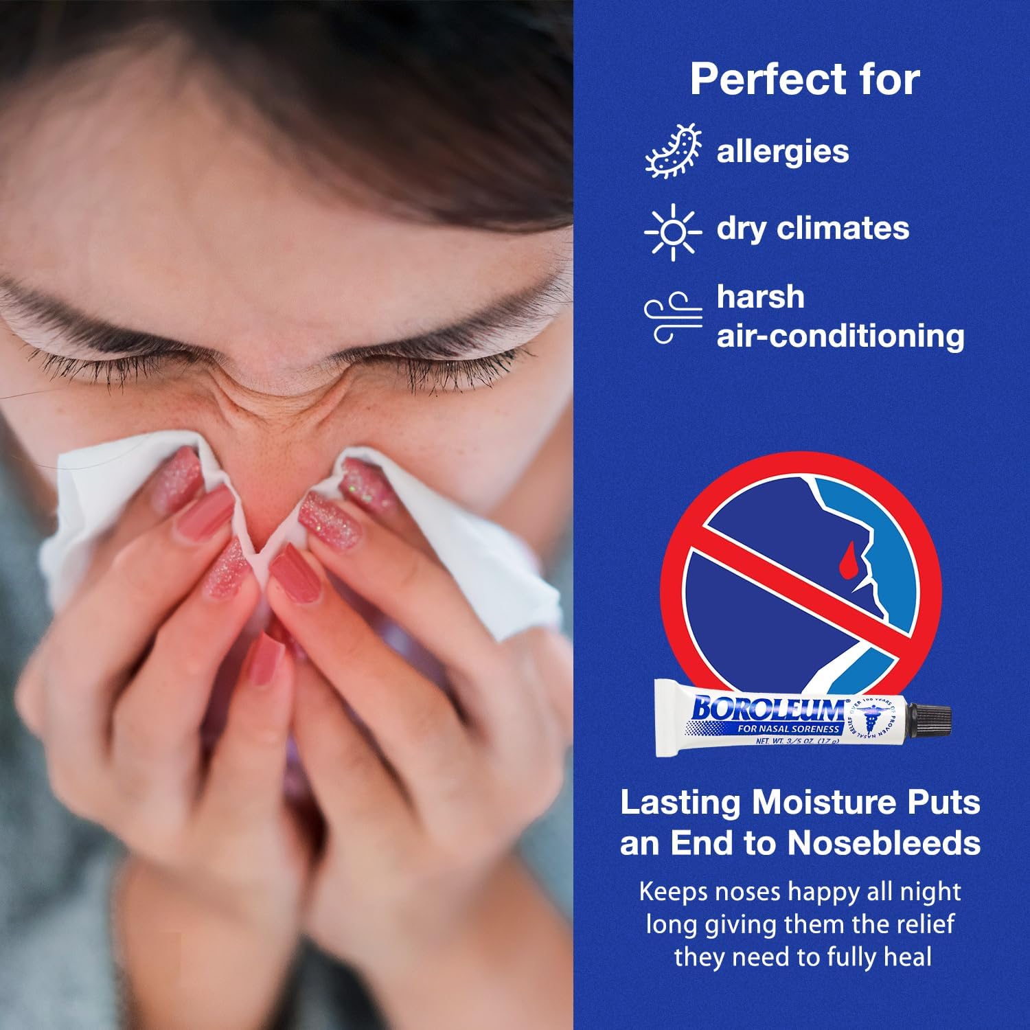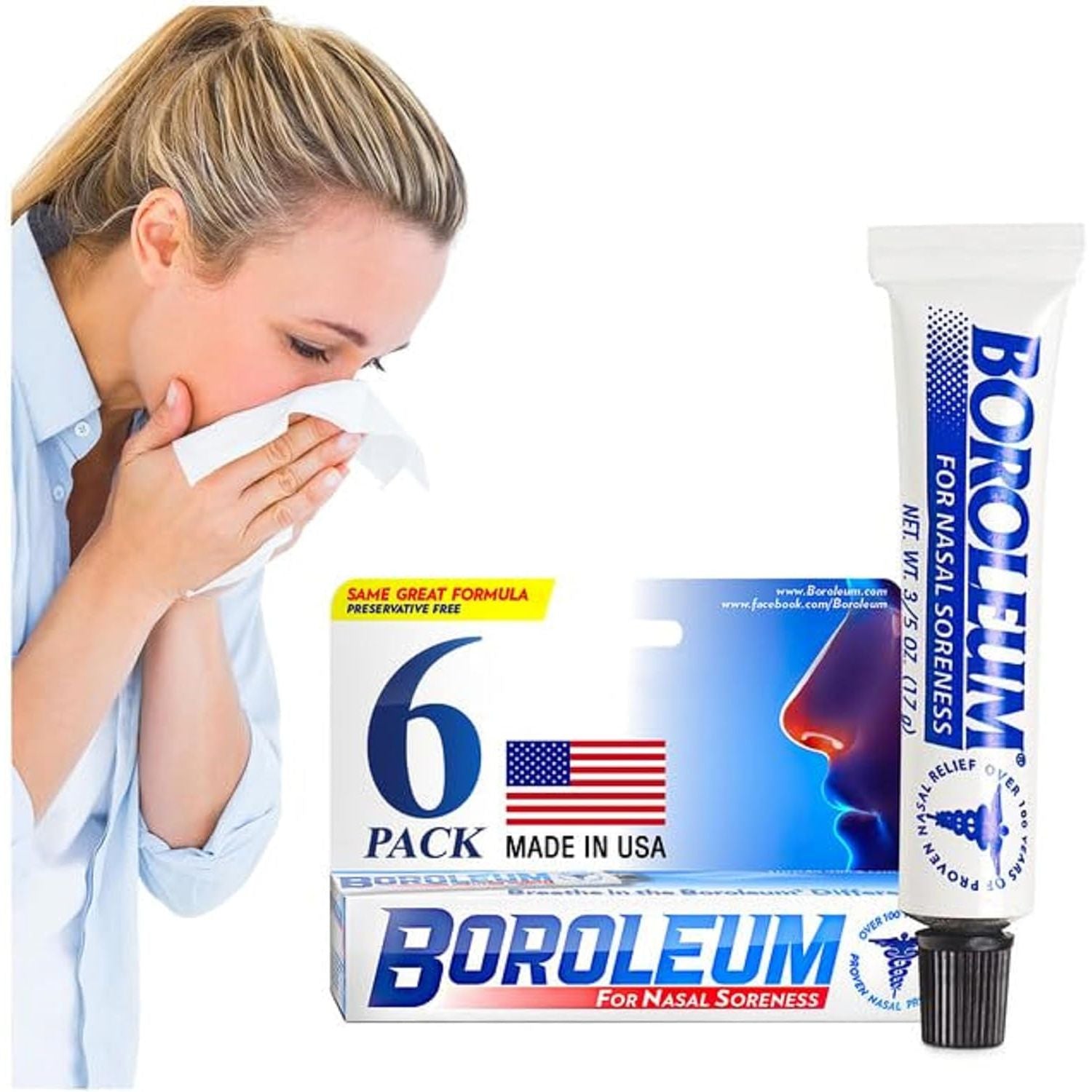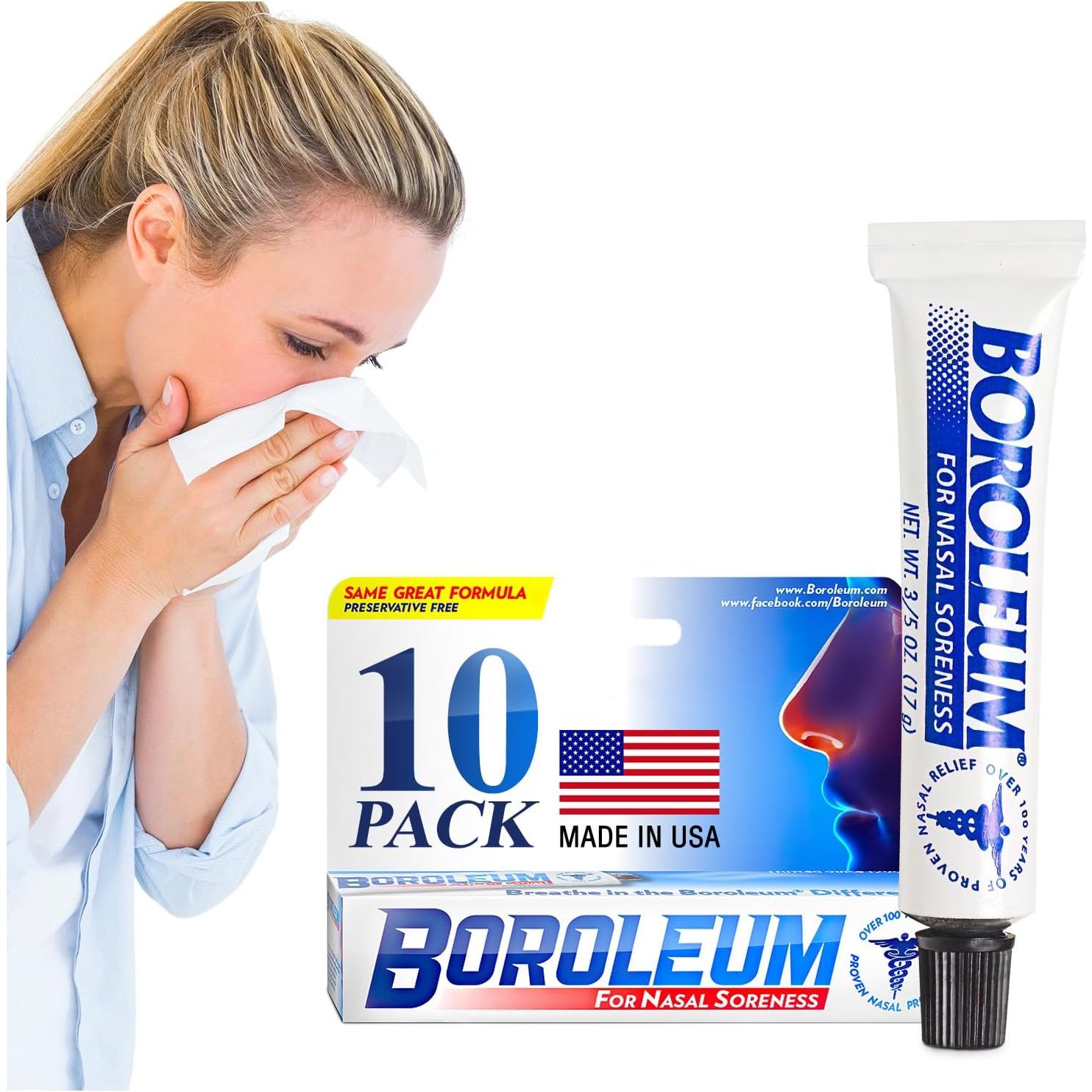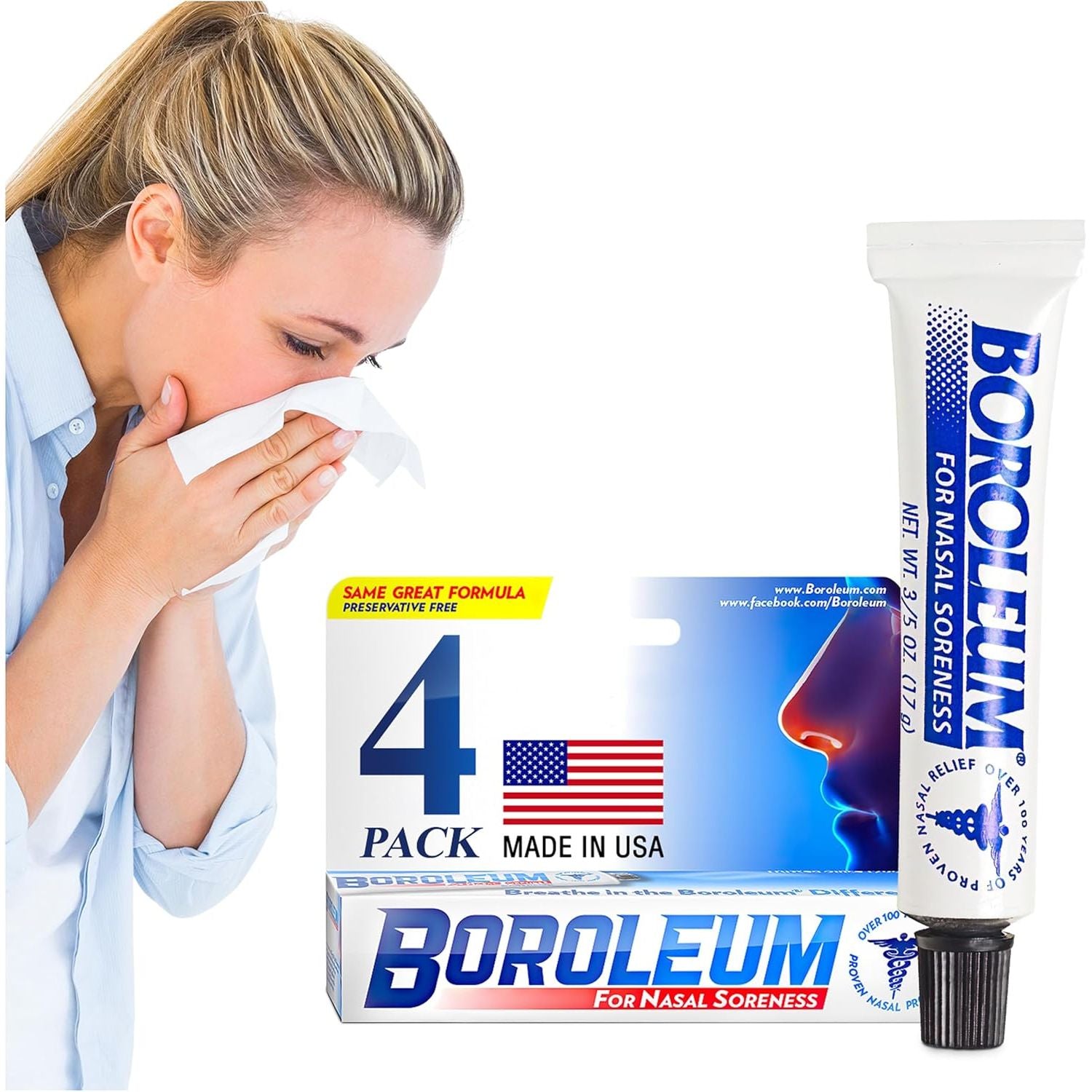 - SOOTHING AMERICA’S NOSES FOR OVER 115 YEARS: Made right here in the USA for over 115 years, Boroleum has been the go-to for irritated noses with a proven formula that makes this nasal balm a must-have wherever red, sore noses are found - perfect for cold weather, allergies, dry climates, even harsh air-conditioning
