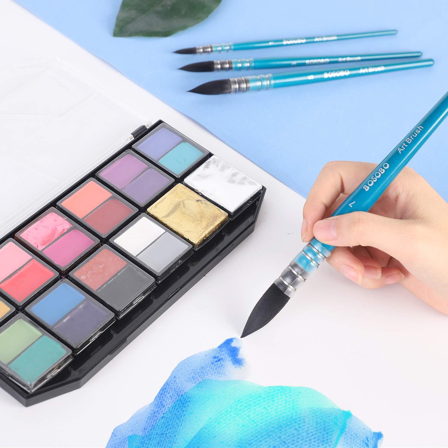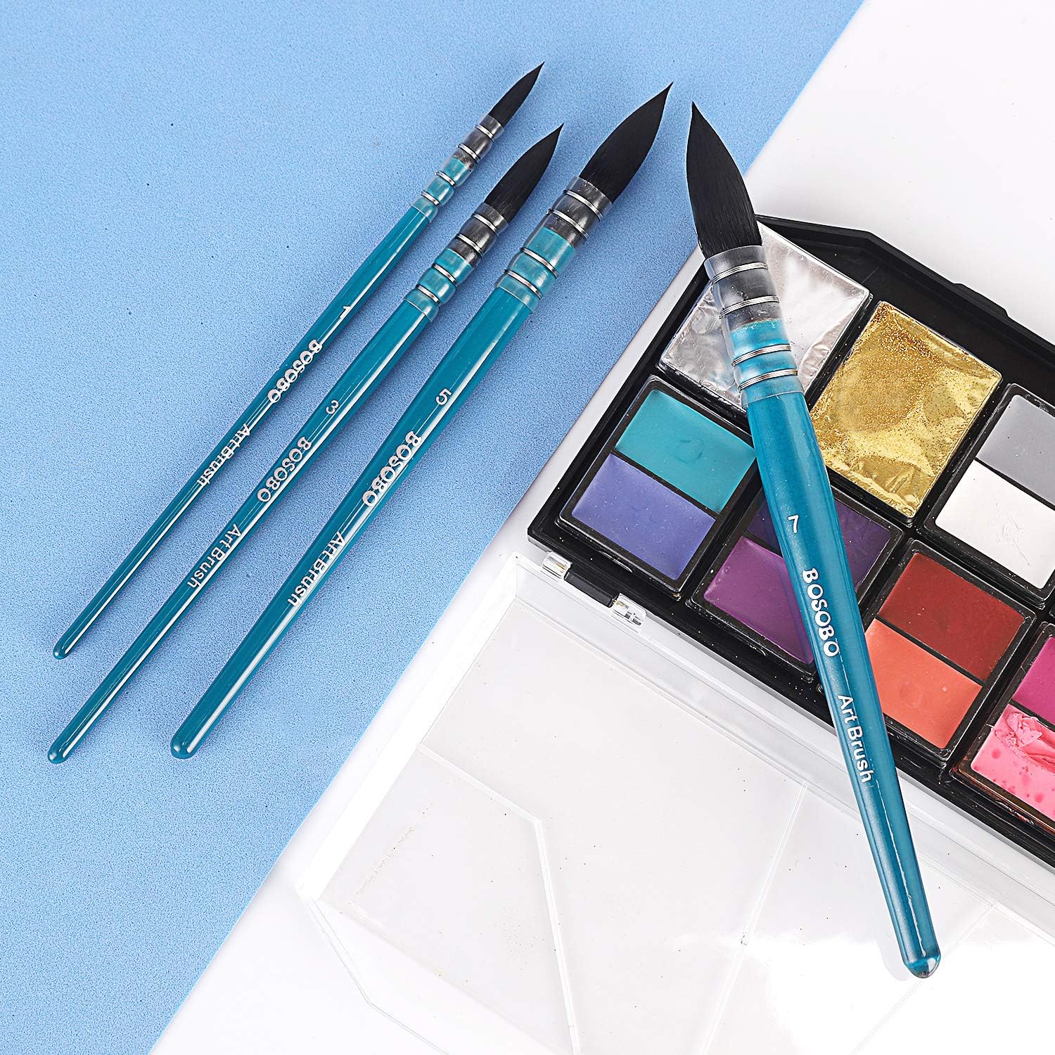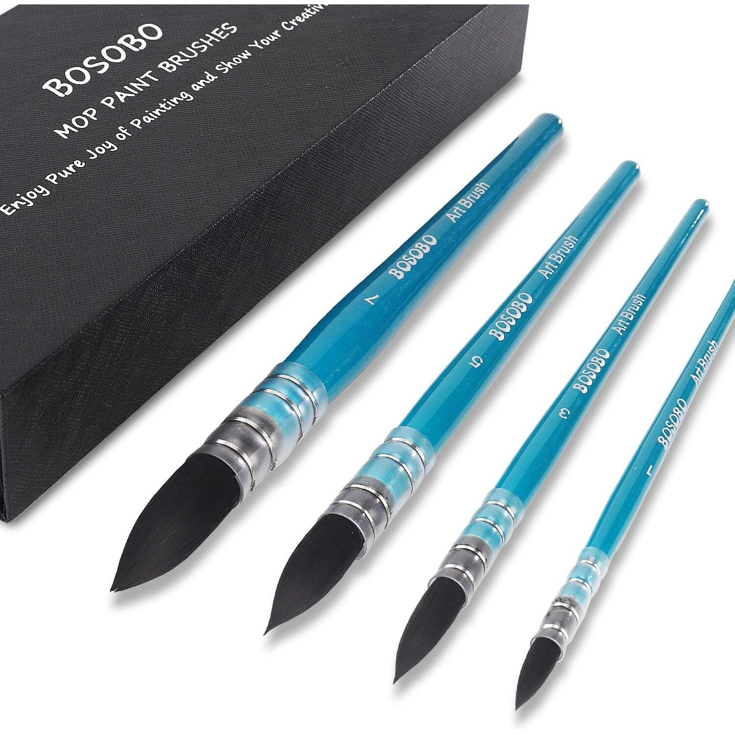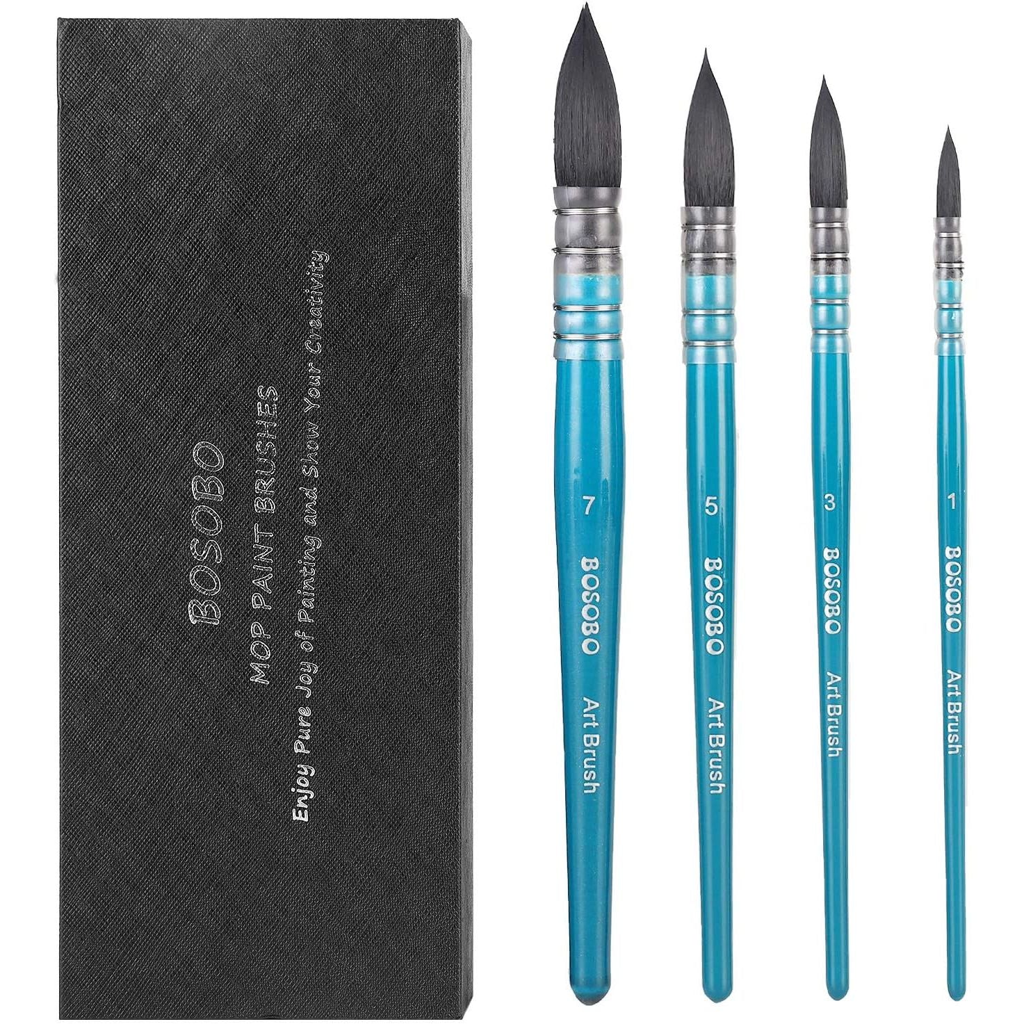 - BOSOBO Paint Brushes Set, 4 Pcs Professional Mop Paintbrushes Round Artist Brushes for Watercolor Acrylic Oil Gouache Ink Painting, Makeup Face Body Art, Canvas, Model & Crafts, Adults Art Supplies